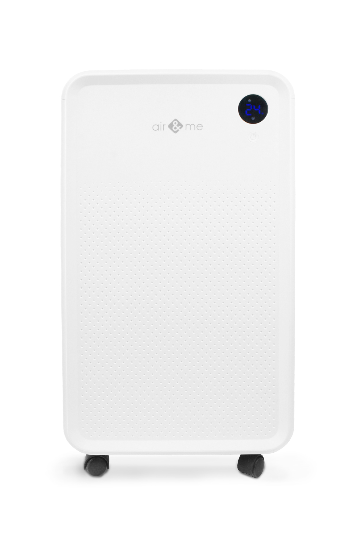 Air & Me LARY Luftentfeuchter mit Kompressor ist "relativ klein, verfügt jedoch über eine enorme Kapazität" (small size but big capacity!) Im Vergleich zu konventionellen Kompressorgeräten sorgt die Rollkolbentechnologie von LARY für mehr Effizienz und weniger Lärm. Seine kompakte Größe und die praktischen Rollen ermöglichen einen einfach transportieren. LARY sorgt mit einer Entfeuchtungsleistung von 12 Liter pro Tag in Räumen bis 40 m² für eine ideale und gesunde Luftfeuchtigkeit. Zur weiteren Ausstattung des Air & Me LARY Lufttrockners zählen ein integrierter Ionisator (reinigt die Luft und entfernt Gerüche), ein Nachtmodus (für eine ungestörte Nachtruhe) und ein Wäschetrockner-Modus. Selbstverständlich verfügt LARY auch über einen permanenten Kondensatanschluss. LARY ist leiser als ein Luftentfeuchter mit einem normalen Kompressor