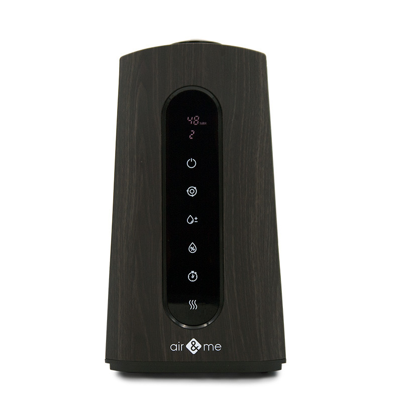Air & Me Clarence Ultraschall-Luftbefeuchter kombiniert Design mit Technologie. Ein effizienter Luftbefeuchter mit Ionisator und Aromatherapie, der einfach über den Touchscreen oder die mitgelieferte Fernbedienung zu bedienen ist. Er reguliert automatisch die optimale Luftfeuchtigkeit und verbessert die Luftqualität in Innenräumen. Ausgestattet mit zahlreichen Funktionen wie 3 Befeuchtungsstufen (High-Medium-Low), warmem oder kaltem Dampf und der patentierten HygroSmart®-Funktion befeuchtet er Räume bis zu 40 m² mit einer Befeuchtungsleistung von maximal 300 ml / h. Gesunde und frische Luft durch eine optimale Befeuchtung mit CLARENCE.