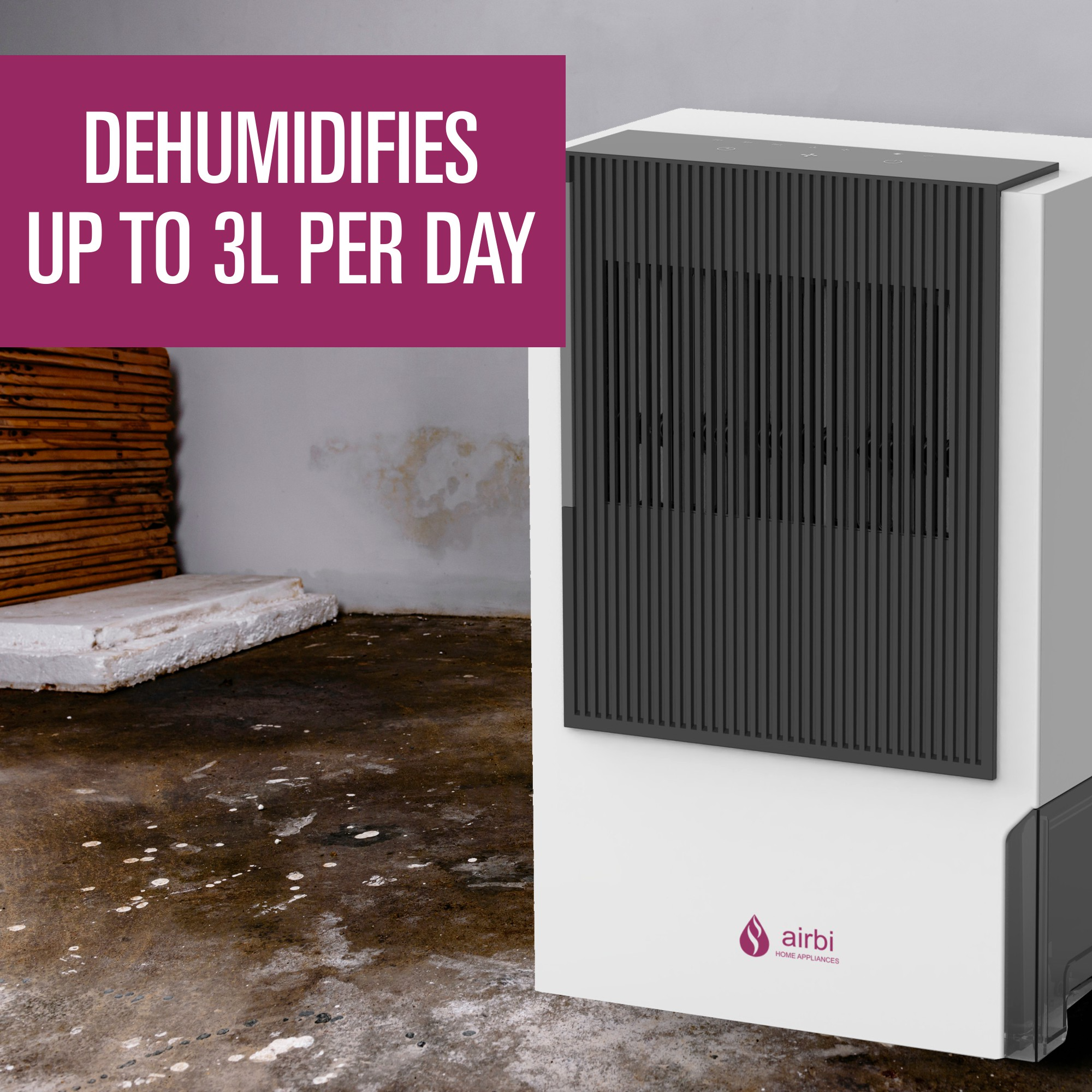Dieser Luftentfeuchter von Airbi ist einfach zu bedienen (Touch-Display), arbeitet leise und effizient. Zur weiteren Ausstattung gehören eine Zeitschaltuhr (Timer von 2, 4, oder 8 Stunden) und ein Vorfilter beim Lufteinlass, der grobe Verunreinigung filtert.