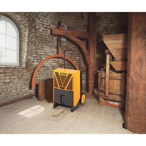 Das Profigerät mit besonders hoher Leistung von bis zu 62 Liter in 24 Stunden. Dieser Kondenstrockner ist wie alle Geräte durch die großen Räder leicht zu transportieren und kann in Räumen bis zu 300 m² eingesetzt werden.