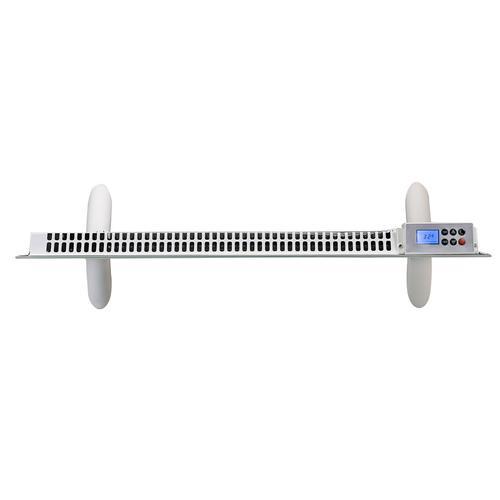 Bimar HC507 Konvektorheizung mit Metallgehäuse und Glasfront erwärmt Räume bis 5 m² effizient und geräuschlos. Ausgestattet mit einer elektronischen Steuerung, einem regelbaren Thermostat von 5 bis 35 °C und einem übersichtlichem Display, sowie einer automatischen Abschaltfunktion bei offenem Fenster (Fenstersensor). Dieser robuste Konvektor aus stabilen Metallgehäuse und einer Frontscheibe aus gehärtetem Glas kann als Wand- oder Bodenheizung (stehend) verwendet werden und ist IP20-klassifiziert. Die praktischen seitlichen Handgriffe und seine kompakte Bauweise ermöglichen einen einfachen Transport.