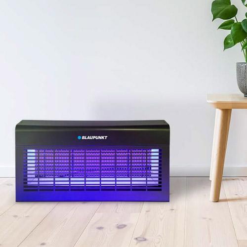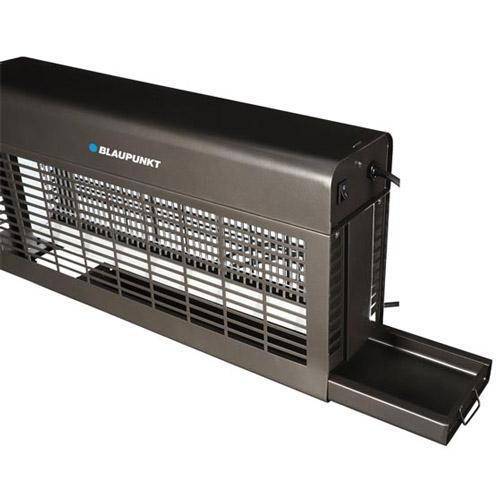Die Insektenlampe Blaupunkt GIKLED06 hat eine Reichweite von 250 m² und ist mit einer UV-A-LED-Leiste und einem 4.000-Volt-Spannungsgitter ausgestattet. Das UV-A-Licht lockt die Insekten zum Spannungsgitter der Fliegenlampe. Sobald sie damit in Berührung kommen, erhalten sie einen Stromschlag und fallen in die herausnehmbare Auffangschale. Blaupunkt, Enjoy it