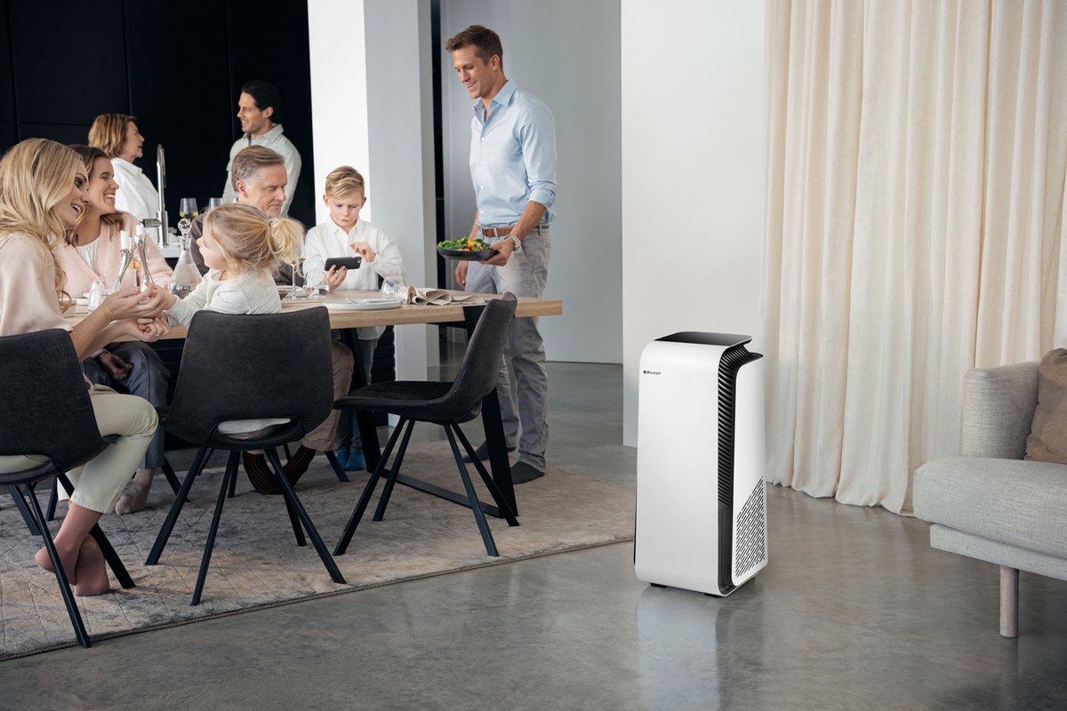Blueair HealthProtect™ 7340i Luftreiniger, der innovativste Luftwäscher von Blueair der rund um die Uhr Schutz vor Viren und Bakterien bietet. Dieses energieeffiziente und flüsterleise Gerät ist perfekt für Bereiche bis 28 m² mit einer hohen Luftaustauschrate von 5 x pro Stunde (Luftumwälzung von 335 m³/h). Die patentierten SpiralAir™- Luftauslässe ermöglichen einen 360°-Luftstrom in alle Richtungen und verteilen schnell mehr saubere Luft in jeden Winkel des Raumes. Die HEPASilent Ultra™ Filtertechnologie kombiniert elektrostatische und mechanische Filterung und tötet 99 % der Keime ab und filtert Staub, Pollen, Hautschuppen, Schimmel, flüchtige organische Verbindungen und Gerüche. Mit der patentierten GermShield™-Technologie überwacht Ihr Luftreiniger proaktiv (Standby-Modus) den Raum und tötet Viren und Bakterien mithilfe einer niedrigen Luftströmung und Plasmaaufladung ab. Ein sanfter Luftstrom verhindert die Bildung neuer Keime. Ein mehrfach ausgezeichneter Luftreiniger von Blueair (AHAM-zertifiziert / reddot winner 2021 / IF Design Award)