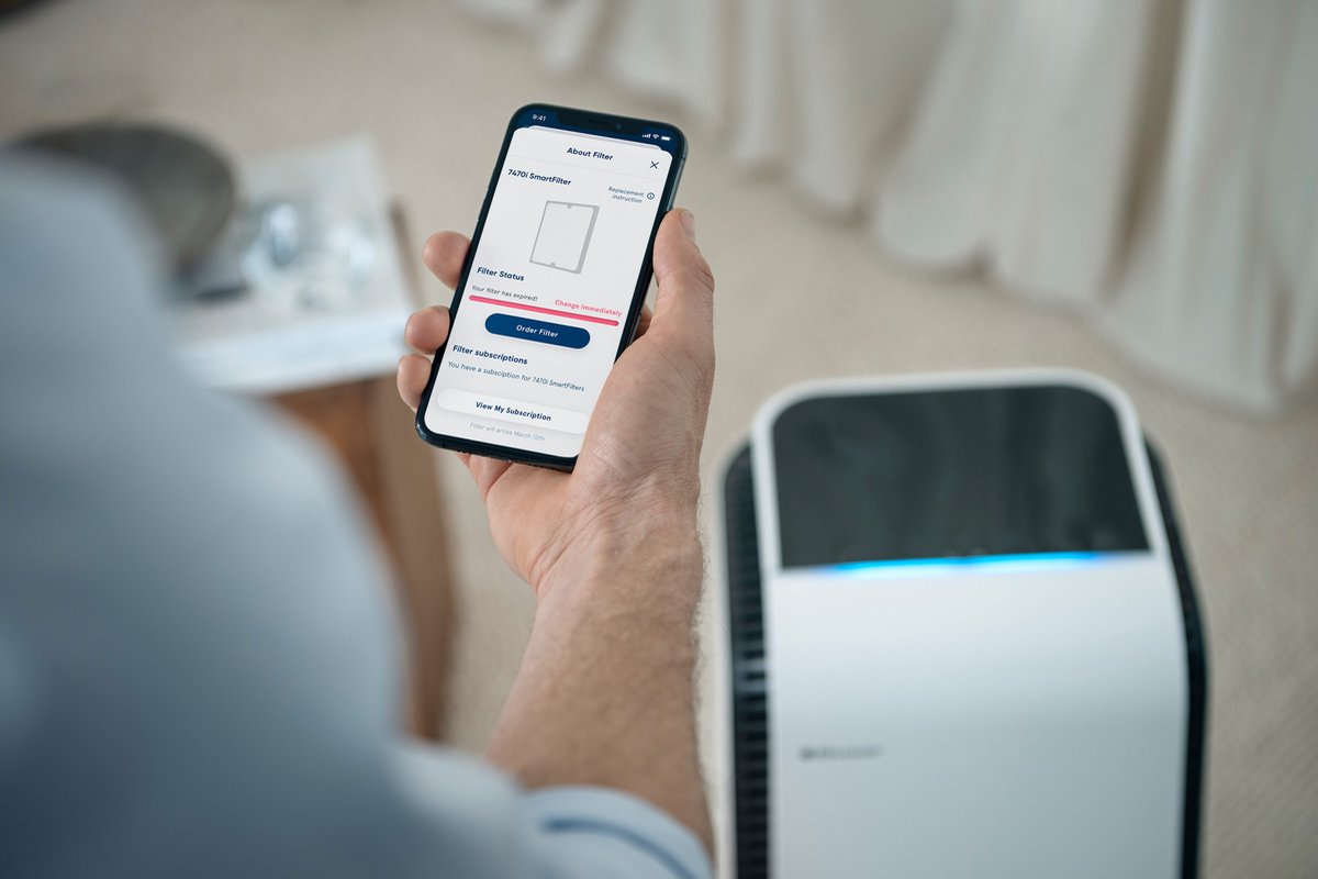 Blueair HealthProtect™ 7370i Luftreiniger - intelligente Filtertechnik mit RFID-Chip (LCD-Anzeige) Blueair HealthProtect™ 7370i Luftreiniger, der innovativste Luftreiniger von Blueair, der rund um die Uhr Schutz vor Viren und Bakterien bietet. Das energieeffiziente und flüsterleise Gerät ist ideal für Räume bis 28 m² mit einer hohen Luftaustauschrate von 5 x pro Stunde (Luftumwälzung 335 m³/h). Ein mehrfach ausgezeichneter Luftreiniger (AHAM-zertifiziert / reddot winner 2021 / IF Design Award). Die Bedienung erfolgt mit Touch-Tastatur für EIN/AUS und den Lüftergeschwindigkeiten sowie den verschiedenen Modi. Auf der übersichtlichen LED-Anzeige wird außerdem die WIFI-Verbindung, Filterwechsel, Einstellungen sowie die Luftqualität (anhand einer Farbscala) angegeben. Sensoren überwachen die Luftqualität in Echtzeit und optimieren automatisch die Leistung des Luftreinigers. Der HealthProtect™ verfügt über einen Smartfilter mit RFID-Chips mit dem die Lebensdauer ständig überprüft und bei Bedarf ein Filterwechsel angezeigt wird. Die Filterkapazität ist zudem sichtbar auf dem Display oder in der App. Der Vorfilter reinigt die Luft von größeren Partikeln. Die Luft wird dann weitergeleitet durch den integrierten Kombinationsfilter (HEPA-Filter und Aktivkohle) der Gase, unangenehme Gerüche, Rauch, flüchtige organische Verbindungen, Abgase, Smog, Chemikalien und winzige Partikel wie Keime, Haustierallergene, Feinstaub, Schimmelsporen, Bakterien, Viren und Pollen filtert. Der Filterwechsel ist etwa alle 6 bis 12 Monate fällig (wird angezeigt!) und kann problemlos mit wenigen Handgriffen und ohne Werkzeug selbst erledigt werden. Die beiden Hauptfilter befinden sich an der Oberseite und können zum Wechsel einfach wie ein Heft umgeklappt werden, wodurch ein Entweichen von Staub und Schadstoffen verhindert wird. Weitere Besonderheiten dieses Luftreinigers: Die patentierten SpiralAir™-Luftauslässe ermöglichen einen 360°-Luftstrom in alle Richtungen und verteilen schnell mehr saubere Luft in jeden Winkel des Raumes. Mit Hilfe der patentierten GermShield™-Technologie überwacht Ihr Luftreiniger proaktiv (Standby-Modus) den Raum und tötet Viren und Bakterien durch einen niedrigen Luftstrom und Plasmaaufladung. Ein sanfter Luftstrom verhindert die Bildung neuer Keime. HEPASilent™-Technologie * - erzeugt mehr saubere Luft, jedoch geräuscharm und mit einem geringeren Energieverbrauch. (Geräuschpegel: 24 - 46,5 dB(A) - flüsterleise bis zu einem normalen Gespräch). HEPASilent Ultra liefert 50 % mehr saubere Luft und verbraucht 55 % weniger Energie. Erhältlich in 2 Modellen: 7340i - Numerische Anzeige der Luftqualität: Eine intuitive 5-Farben-Anzeigeleiste gibt schnelle Updates über Partikel- und Gaskonzentrationen, und eine digitale Anzeige quantifiziert die Konzentrationen für PM1-, PM2,5- und PM10-Partikel. 7370i - LCD-Anzeige für die Luftqualität: Eine Premium-LCD-Anzeige informiert Sie detaillierte über Ihre Luftqualität – Konzentrationen von Partikeln unterschiedlicher Größe, VOC-Werte, Temperatur und Luftfeuchtigkeit. Sogar die Nutzung Ihres Filters wird überwacht, damit Sie in Echtzeit wissen, welche Filterkapazität noch vorhanden ist. Die Blueair-App ermöglicht nicht nur die Steuerung, sondern überwacht mithilfe eines Algorithmus die Parameter und informiert Sie über den Fortschritt der Luftreinigung, sowie die geschätzte Zeit, bis die Luft sauber ist. Zudem erhalten Sie personalisierte Wochenberichte mit den wichtigsten Luftqualitätsindizes und Grafiken. Die spezielle Filterseite in der App informiert Sie über die Lebensdauer des Filters. Eine weitere Steuerungsmöglichkeit ist die Sprachsteuerung über Amazon Alexa, Tmall Genie Smart Speaker oder Google Home. Anwendungsbereiche sind private und gewerbliche Bereiche wie Wohnzimmer, Kinderzimmer, Schlafzimmer, Büro. Merkmale: Für Räume bis 28 m² Patentierte GermShield™-Technologie Patentierte HEPASilent Ultra™ Filtertechnologie (Filter im Lieferumfang enthalten) Patentierte SpiralAir™- Luftauslässe Hohe Luftaustauschrate: 4,8 Luftwechsel / Stunde in Räumen bis 28 m² oder 2 Luftwechsel / Stunde in Räumen bis 67 m² (AHAM zertifiziert) Luftdurchsatz: 335 m³/h CADR Rauch 335 m³/h (200 cfm) CADR Staub 335 m³/h (200 cfm) CADR Pollen 335 m³/h (200 cfm) WLAN-kompatibel Bedienung: Manuell / Automatik / App Mit WLAN(WiFi): Steuerung via Smartphone / Tablet Über die Blueair App, Google Home oder Amazon Alexa (Sprachsteuerung) Leistungsstufen: 1 - 2 - 3 - AUTO - Nacht mittels Ein-Knopf-Bedienung Partikelsensor misst die Luftqualität, die durch eine mehrfarbige LED-Anzeige angezeigt wird VOC-Sensor: misst Gase Temperatur- und Luftfeuchtigkeitssensor 3 Filterstufen: Vorfilter: rostfreier Stahl, positiv geladen, leicht zu reinigen HEPA-Filter Aktivkohlefilter AUTO-Modus Nacht-Modus: Dimmbare Beleuchtung (LED) Kindersicherung Timer Filterwechselintervall: alle 6 - 12 Monate Filterwechselanzeige Geräuschpegel: 24 - 46,5 dB(A) Energieeffiziente Leistung: 7 - 39 Watt Filtereffizienz 99,97 % > 0,1 Mikron Gewinner: reddot winner 2021 & IF Design Award 2021 Abmessungen 61 × 27 × 27 cm / Gewicht 9,5 kg 2-Jahre-Garantie * Die HEPASilent™-Technologie kombiniert mechanische und elektrostatische Filterung, um eine höhere Clean Air Delivery Rate (pCADR) für Partikel zu erzielen als herkömmliche Methoden, die nur mechanische Filterung verwenden (bei gleicher Lüftergeschwindigkeit und Energieverbrauch von 18,3 W). Basierend auf CADR-Tests für Partikel gemäß der Norm GB / T18801-2015.