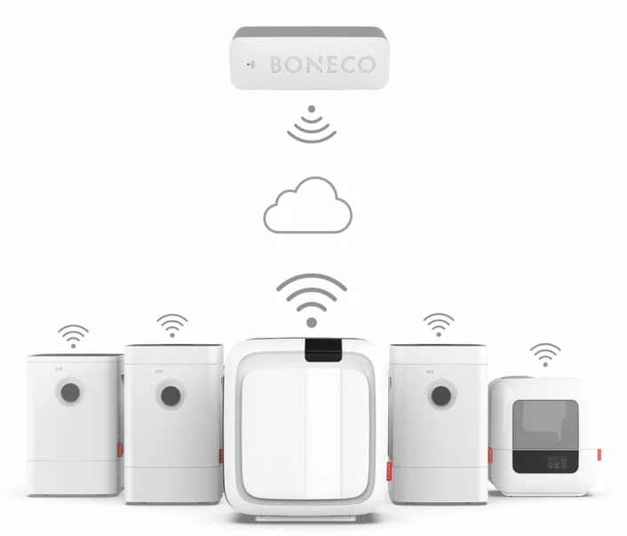 Boneco X50 SMART Temperatur- & Feuchtigkeitssensor (1 Stück) Boneco X50 SMART ist ein kompakter und smarter Temperatur- und Luftfeuchtigkeitssensor. Dank WLAN-Technologie kann er einfach mit Mit der BONECO SMART App (iOS & Android) verbunden werden und hilft bei der Steuerung der BONECO Geräte der SMART-Serie. WLAN Temperatur- und Feuchtigkeitssensor Überwachung und Steuerung in der BONECO SMART App SMART Verbindung zu anderen BONECO SMART Geräten Kompatibel mit der TUYA Smart Life App BONECO - healthy air