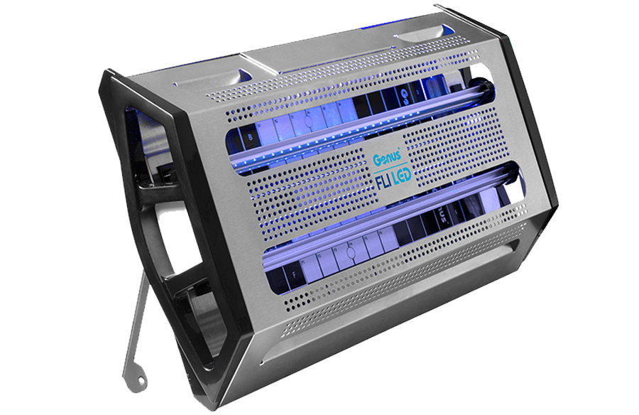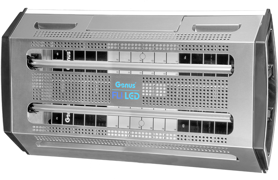 Brandenburg Genus® FLI LED Insektenvernichter ist der Nachfolger des Genus® FLI Insektenvernichters mit UV-Licht. Auch diese Insektenfalle mit Klebefolie verwendet die patentierte Translucent Technology™ und garantiert eine hohe Fliegenfangrate. Die Insektenfalle ist mit bruchsicheren LED-Lampen (konform HACCP-Kontrollsystem) und einem Schnellverschluss für eine schnelle und einfache Wartung ausgestattet. Weitere Vorteile sind die unterschiedlichen Montagemöglichkeiten an der Wand: horizontal, vertikal oder in einer Ecke, kann aber auch als freistehendes Gerät verwendet werden. Brandenburg Genus® FLI LED hat im Vergleich zum Genus® FLI mit UV-Lampen eine schnellere Fangquote von 7 % (innerhalb von 60 Minuten) und eine Energieeinsparung von 56 %. Genus® FLI LED verfügt über 2 x 30 16W LED-Beleuchtung.