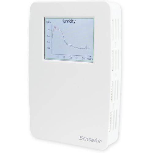 SenseAir CO2RLVT (SenseAir tSENSE (CO₂/TEMP/RV) mit Touchscreen & 2-farbigen Indikator Der SenseAir CO₂ RLVT (SenseAir tSENSE (CO₂/TEMP/RV) ist die neueste Entwicklung von SenseAir. Der SenseAir CO₂ RLVT kombiniert die drei wichtigsten Parameter CO₂, Temperatur und Luftfeuchtigkeit bei der Überwachung des Raumklimas und/oder zur Steuerung eines angeschlossenen Lüftungssystems. Der Messbereich beträgt bis zu 9.999 ppm. Die Genauigkeit bis zu 2.000 ppm beträgt +/- 50 ppm. Der SenseAir tSENSE ist mit einem Touchscreen ausgestattet zur Programmierung und Darstellung der gemessenen Daten. Die aktuellen und gemessenen Werte der letzten 24 Stunden (und Woche) werden in einer Grafik auf dem übersichtlichen Display angezeigt. Bei zu hohen Werten färbt sich die Anzeige orange oder rot (2-farbiger Indikator). Sie können diese Indikatoren selber einstellen und aus verschiedene Ansichten auf dem Display wählen. Somit kann sich auch das gesamte Display orange oder rot färben, wenn der CO₂-Wert überhöht und die Luftqualität schlecht ist. Die Grenzwerte der Farben lassen sich einfach über das Display selber einstellen. Der SenseAir tSENSE eignet sich hervorragend zur Steuerung von mechanischen Lüftungsanlagen, Wärmerückgewinnungssystemen, Kanalventilatoren oder Dachventilatoren. Die Steuerung erfolgt über ein 0-10V Signal, Modbus oder BACnet. Der tSENSE reguliert das auf Basis von zwei verschiedenen Parametern, wie beispielsweise CO₂ und relative Feuchte. Alles kann einfach über das Touchscreen-Display eingestellt werden. Das CO₂-Messgerät ist batterielos und wird mit einem weißen Netzadapter mit Kabel geliefert. Es kann direkt an einer Wand befestigt werden oder im passenden Halter (Tischständer), den Sie einfach mitbestellen können. SenseAir steht für schwedische Spitzenqualität und garantiert eine umfassende 2-jährige Herstellergarantie. Dieses CO₂-Messgerät ist wartungsfrei und selbst kalibrierend. Optional können die Messdaten über ein USB-Kommunikationskabel mit Software auf einem PC gespeichert werden. Die Daten werden dann in einem Diagramm angezeigt und können in einer Datei gespeichert werden (beispielsweise Excel).