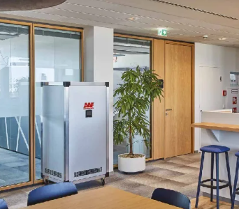 Daikin AAF AstroPure 2000 Luftreiniger (BR00000676) für gewerbliche und öffentliche Bereiche Daikin AAF AstroPure 2000 (BR00000676) ist ein leistungsstarker, mobiler Plug-and-Play-Luftreiniger, der serienmäßig mit hocheffizienten Filtern (HEPA-H14-Filter und Aktivkohle-Vorfilter) ausgestattet ist. Mit einer Luftdurchsatzleistung von bis zu 2.000 m³/h sorgt der Luftreiniger für eine sichere und gesunde Raumluft. Der integrierte Ventilator mit variabler Drehzahl (Frequenzumformer) und die Filterkombinationen ermöglichen den Einsatz in verschiedenen Anwendungsbereichen. Das Gerät kann sowohl in Innenbereichen als auch in geschützter Aufstellung im Freien verwendet werden, mit einer Abdeckung von bis zu 200 m². AstroPure ist eine vollständig autonome, freistehende Umluftanlage für Bereiche, in denen eine besonders hohe Filterleistung gegen jegliche Art von Verunreinigungen, einschließlich Viren, erforderlich ist. AstroPure kann auch als Unterdruckgerät verwendet werden. Dank der isolierten Doppelwand-Konstruktion arbeitet die Anlage flüsterleise. Das vollständig geschlossene System ermöglicht eine einfache Bedienung und Wartung. RedPleat-Aktivkohle-Vorfilter: Standardmäßig ist ein Vorfilter der Klasse ISO 16890: ISO Abscheidegrad 65 % ePM10 installiert. Er bietet die niedrigstmöglichen Gesamtbetriebskosten bei geringem Verschleißwiderstand, langer Filterlebensdauer und schützt den installierten HEPA-Filter. Entfernt wirkungsvoll unangenehme Gerüche. MEGAcel® I eFRM (Hauptfilter): Der serienmäßig integrierte HEPA H14-Filter ist mit ePTFE-Filtermedien ausgestattet, die eine extrem hohe Effizienz und Partikelbeladung vereinen. Er filtert 99,99 % der Staub-, Pollen-, Schimmelpilz-, Bakterien- und Virenpartikel sowie alle luftgetragenen Partikel mit einer Größe von 0,3 Mikrometern oder mehr aus der (durchströmenden) Luft. HEPA H14-Filtereffizienz gemäß EN1822 ePTFE-Medien kombinieren ultrahohe Effizienz mit dem geringstmöglichen Druckabfall Hohe Zugfestigkeit Chemisch inert (reaktionsträge) Verwendet hochwertige Mikroglasmedien für eine hocheffiziente Partikelentfernung Kompatibel mit Discrete Particle Counter (DPC) und photometrischen Testmethoden (sofern Zugriff und Instrumentierung dies zulassen) LCD-Display: volldigitales Display ermöglicht eine einfache Bedienung und Überwachung der zahlreichen Einstellungen, wie Anpassung des Luftstromes (variabel bis 2000 m³/h) oder Echtzeitüberwachung der Filter. Ideale Luftreiniger für gewerbliche oder öffentliche Bereiche wie Büros, Schulen, Pflegeeinrichtungen, Geschäfte und Gastronomiebetriebe geeignet. Daikin AAF AstroPure 2000 ist in verschiedenen Ausführungen erhältlich. Alle Modelle sind serienmäßig mit demselben Hauptfilter (MEGAcel® I eFRM) ausgestattet. BR00000554: RedPleat Vorfilter BR00000676: RedPleat Aktivkohle-Vorfilter (Gasphasen-Vorfilter) und LC-Anzeige. BR00000678: RedPleat Aktivkohle-Vorfilter (Gasphasen-Vorfilter) und LC-Anzeige sowie Bestrahler mit keimtötendem UV-Licht (noch nicht erhältlich) Merkmale: Für Bereiche bis 200 m² Luftdurchsatz: 2000 m³/h Benutzerfreundliches Bedienfeld mit Filteranzeigen und Geschwindigkeitsregelung Integrierter Lüfter mit variabler Geschwindigkeit (elektronisch berechnet) und Filterkombination Plug & Play Luftreiniger mit einer Höhe von 1.628 mm Serienmäßig leistungsstarker HEPA H14-Filter (AstroCel III) RedPleat-Aktivkohle-Vorfilter (ISO Coarse 70 %) Hauptfilter: MEGAcel® I eFRM Hochleistungs-Partikelluftfilter (HEPA H14-Filter) volldigitales LCD-Display: Schnittstelle mit verriegelbarem LCD-Bildschirm Einfache Wartung durch das Design der Schiebeschublade Leiser Betrieb: doppelwandig isoliertes Gehäuse - 56 dB(A) Mobil: 4 Transportrollen ermöglichen einen einfachen Transport CE-konform, Ausführung nach VDI 6022 Optionaler Anschluss/Installation von Lufteinlass- und Luftauslasskanälen Geeignet für den Einsatz innerhalb oder außerhalb des zu reinigenden Bereichs Im Lieferumfang des AAF AstroPure-Luftreinigers sind ein Installations-, Betriebs- und Wartungshandbuch sowie ein AAF-HEPA-Filtertestbericht enthalten.