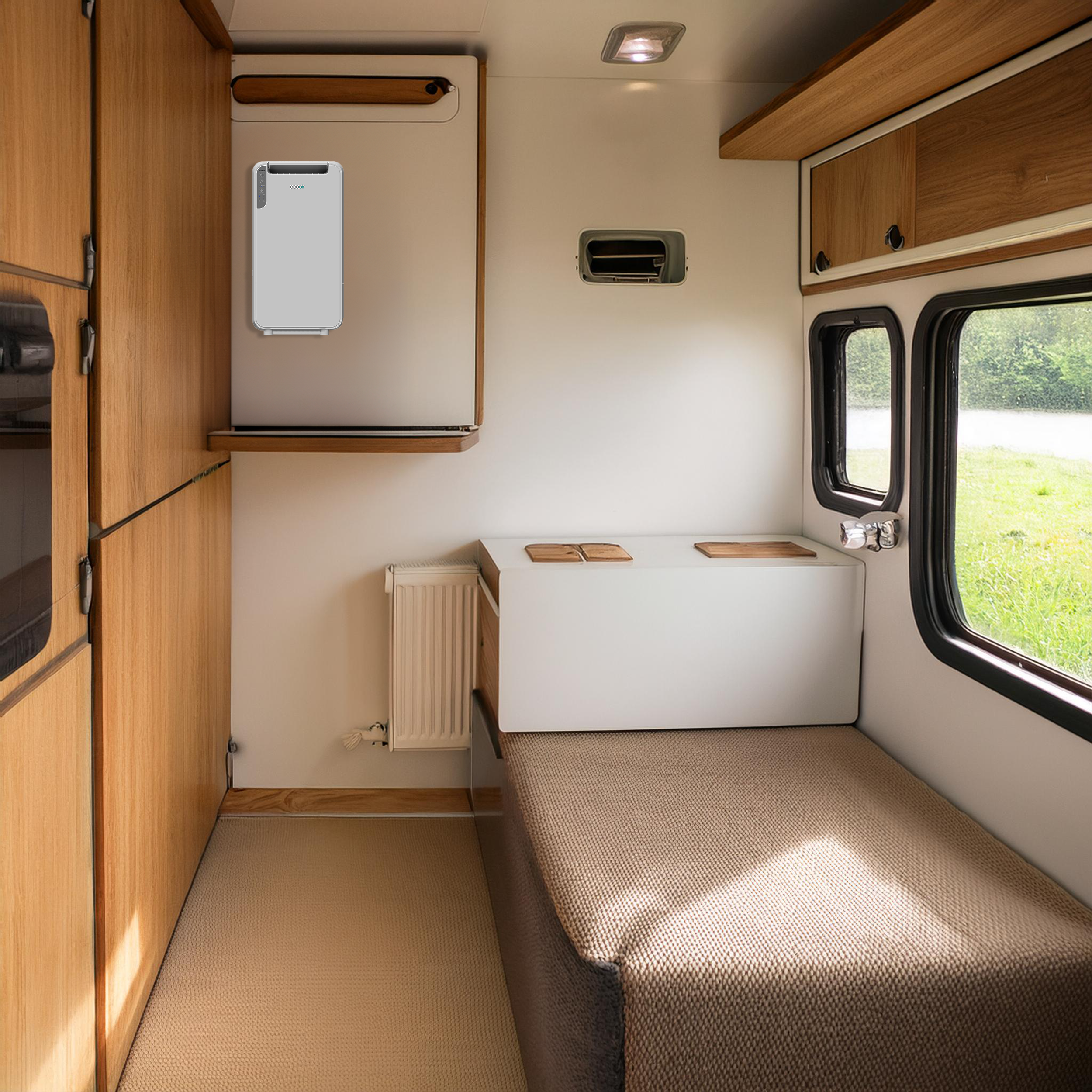 EcoAir Piccola Adsorptionstrockner ist ein kompakter Trockenmittel-Luftentfeuchter, der sowohl als Standgerät als auch zur Wandmontage verwendet werden kann. Der kompakte Luftentfeuchter arbeitet mit einem Adsorptionsmittel anstelle eines Kompressors. Das Gerät entzieht bereits bei niedrigen Temperaturen (Arbeitsbereich 1 - 40 °C) bis zu 5 Liter Feuchtigkeit pro Tag und eignet sich daher besonders für den Einsatz in unbeheizten oder ungedämmten Räumen (bis 45 m²). Ein energieeffizienter Entfeuchter (E7-Technologie) hat die Schutzklasse IP24 (wasserdicht) und kann über das benutzerfreundliche Display bedient werden. Das entzogene Wasser wird entweder im Wassertank (1,5 Liter) gesammelt oder kann über einen Kondensatanschluss abgeleitet werden. Piccola ist ein Leichtgewicht (4 kg), arbeitet geräuscharm und ist mit einem einem antibakteriellen Filter (Nano-Silberfilter) zur Luftreinigung ausgestattet.