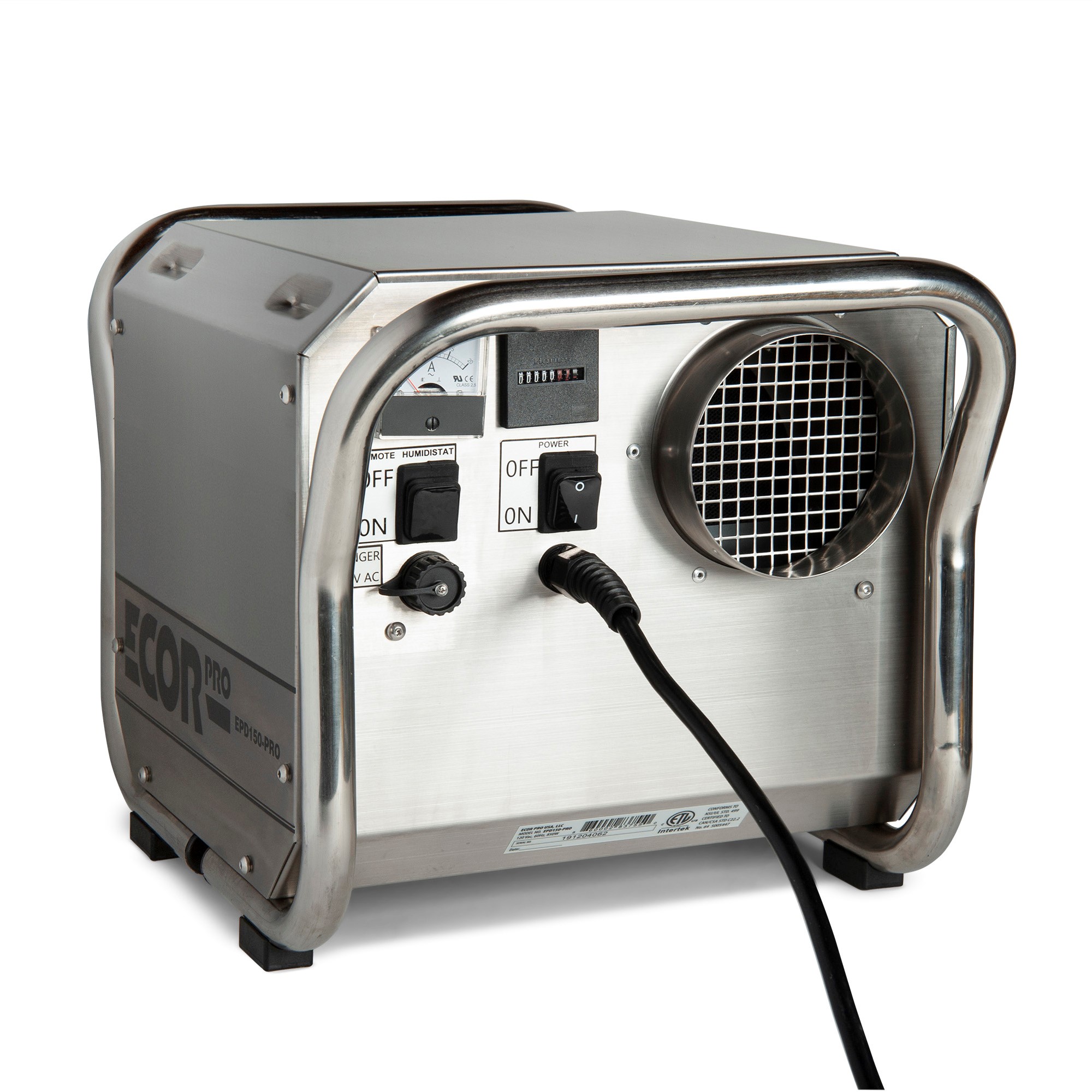 Der robuste und leistungsstarke Industrie-Luftentfeuchter ist sehr einfach zu installieren und bedienen. Das Gehäuse des DryFans ist aus rostfreiem Stahl gefertigt und bietet optimalen Schutz gegen Korrosion durch beispielsweise Salzwasser oder Chemikalien. Der netzartigen Staubfilter kann leicht gereinigt und bei Bedarf ausgetauscht werden. Dieser Trockenmittel-Luftentfeuchter kann optional mit einem externen Hygrostat zur automatischen Steuerung aufgerüstet werden. Das Ecor Pro EPHUM110E Hygrostat kann an der Vorderseite angeschlossen werden und schaltet den Trockner automatisch ein oder aus. Der kompakte und leichtgewichtige Ecor Pro DH2500 (17,5 kg) passt in jede Ecke und ist so konzipiert, dass es sogar kopfüber montiert werden kann. Mit Hilfe der ergonomischen Tragegriffe kann er auch problemlos als tragbarer Luftentfeuchter verwendet werden. Die Handgriffe können entfernt werden und dienen auch als Schutz für die Kanalflansche.