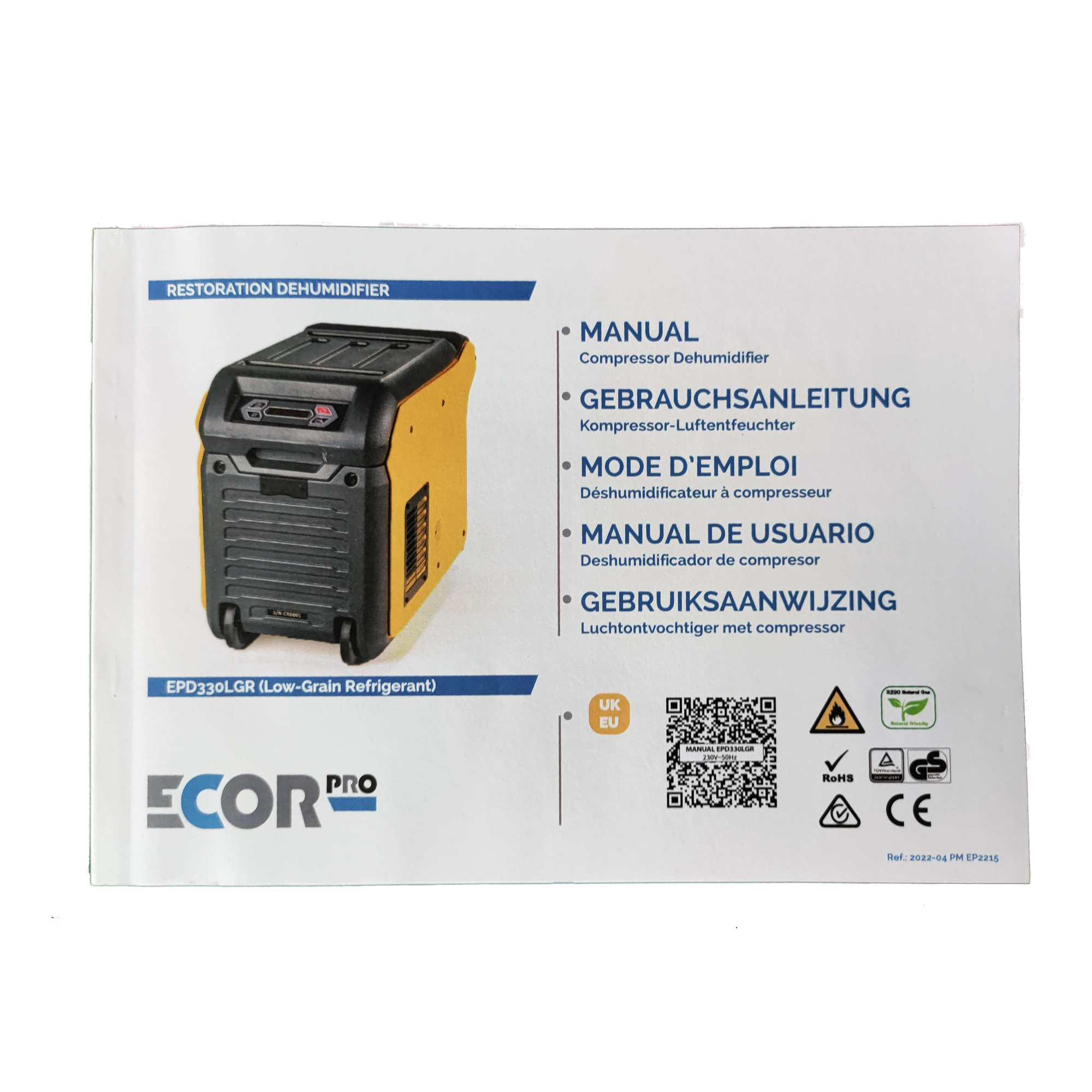 Ecor Pro EPD330LGR Bautrockner mit integrierter Kondensatpumpe Der Ecor Pro EPD 330 LGR Bautrockner mit integrierter Kondenspumpe ist Ihr Retter in Not nach Überschwemmungen, hilft aber auch bei der Trocknung von feuchter Wände in Kellern oder Rohbauten. Die Entfeuchtungskapazität beträgt 150 Liter pro Tag in Räumen bis 630 m². Die seitlich integrierten Handgriffe und Räder an der Unterseite ermöglichen einen einfachen Transport des EPD 330 LGR. Außerdem ist er dank seines flachen Designs stapelbar und das roto-geformte Kunststoffgehäuse ist robust und langlebig (kein Korrosionsrisiko!). Die Seitenwände und die obere Abdeckung sind leicht abnehmbar und ermöglichen einen einfachen Zugang zum Wassertank, zur Pumpe oder zu anderen Komponenten, die gewartet oder repariert werden müssen. Der austauschbare Aktivkohlefilter wird von einem robusten Aluminiumrahmen geschützt, ist pflegeleicht (einfach abwischen) und langlebig. Der Ecor Pro EPD 330 LGR zeichnet sich nicht nur durch seine Vielseitigkeit (Anwendungsbereiche), sondern ist auch benutzerfreundlich aus. Der Bautrockner verfügt über ein übersichtliches Display mit elektronischen Bedienelementen. Von hier aus werden die Betriebsarten und alle Funktionen gesteuert. Darüber hinaus werden alle Werte (Feuchtigkeit, Verbrauch, Temperatur usw.) angezeigt. Dieser Ecor Pro Luftentfeuchter ist energieeffizient,mit optimalen Kompressor-Betriebszeiten basierend auf einer internen Mikroprozessorberechnung zur Leistungsoptimierung. Durch die integrierte Kondensatpumpe (Förderhöhe 3,5 m) und den mitgelieferten Ablaufschlauch kann der LGR-Luftentfeuchter auch im Dauerbetrieb eingesetzt werden. Auf diese Weise können Kellerräume oder andere tiefer gelegene Räume problemlos entfeuchtet werden. Optional kann der seitliche Luftaustritt über einen Kanal geleitet werden, wodurch eine gezielte Punkttrocknung möglich ist und der Einsatz in überdachten Bereichen sogar die Trocknungszeiten verkürzt. Funktionsweise Low-Grain-Kältemittel (LGR) Entfeuchter Im Gegensatz zu herkömmlichen Luftentfeuchtern arbeitet ein LGR Entfeuchter mit einem doppelten Kühlsystem und senkt damit auch die Temperatur der Feuchtigkeit: 2 Luftströme erreichen den LGR-Entfeuchter (ein warmer & feuchter, und ein kalter & feuchter). Mithilfe des Verdampfers wird der Luft Feuchtigkeit entzogen und im Kondensator wird kalte, trockene Luft erzeugt, die als warme und trockene Luft an die Umgebung abgegeben wird. Funktioniert nach dem Prinzip des Energieaustausches und bereits bei niedrigen Temperaturen und Luftfeuchtigkeiten. Merkmale: Für Räume bis 630 m² Entfeuchtungskapazität 150 Liter pro Tag Übersichtliches Display Elektronische Steuerungen & Mikroprozessor Integrierter Luftbefeuchter Vor- und Aktivkohlefilter: leicht zu reinigen & langlebig Betriebstemperatur: 4 °C — 38 °C Integrierte Kondensatpumpe (Förderhöhe 3,5 m) Anschluss für permanenten Kondensatabfluss Lieferung inkl. Ablaufschlauch Robustes Rotationsgeformtes Kunststoff-Gehäuse Einfach zu transportieren Stapelbar Auto-Restart: Stromausfall startet der Luftentfeuchter automatisch Wasserfestem 230-Volt-Stecker gemäß EU-Vorschriften Ideal für Restaurierungsarbeiten (Wasserschäden etc) oder zur Trocknung feuchter Wände (Putz, Farbe) im Bauwesen Das Ausblasgitter kann für den Anschluss von Rohren ausgetauscht werden. Entfeuchtungsleistung und Raumtemperatur 27 °C und 60 % Luftfeuchtigkeit: 39 Liter/Tag 30 °C und 80 % Luftfeuchtigkeit: 80 Liter/Tag 35 °C und 95 % Luftfeuchtigkeit: 95 Liter/Tag