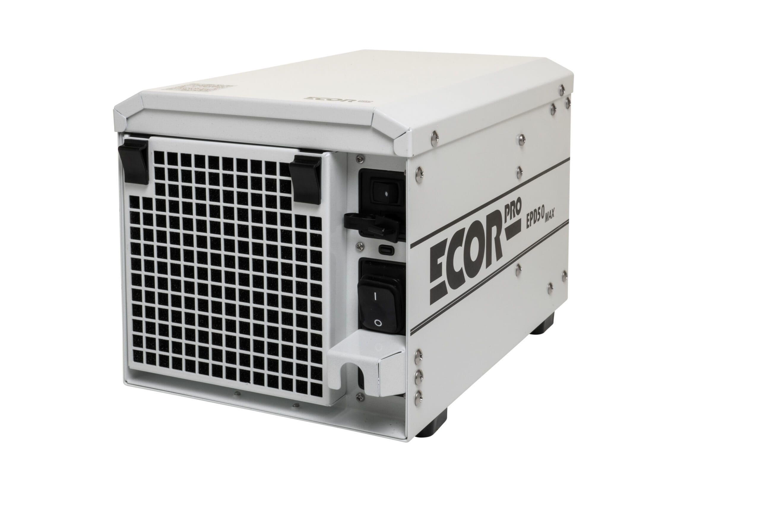Ecor Pro EPD50-MAX Adsorptionstrockner ist ein Semi-PRO Trockenmittel-Luftentfeuchter und sorgt auch bei niedrigen Temperaturen für eine effektive Entfeuchtung – ohne Kondensatbildung. Ob automatischer oder kontinuierlicher Betrieb, dieser Ecor Pro hat eine Entfeuchtungskapazität von 13 Liter pro Tag in Bereichen bis 80 m². Der Luftentfeuchter ist kompakt, stapelbar und kann vielseitig installiert werden, eignet sich auch zur Wand- oder Deckenmontage. Seine IP24-Klassifizierung ermöglicht den Gebrauch in feuchten Bereichen. Mit dem manuellen, kabelgebundenen EPHUM-I-DRY-Hygrostat lässt sich die gewünschte Luftfeuchtigkeit einstellen. Ein Abluftschlauch und 125 mm/5″ Rohrleitungsflanschen gehören zur weiteren Ausstattung. Optional: WLAN-Kontrolle und Steuerung mittels Wi-Fi EPHUM-I-MAX-Remote Control & Monitor (nicht im Lieferumfang enthalten)