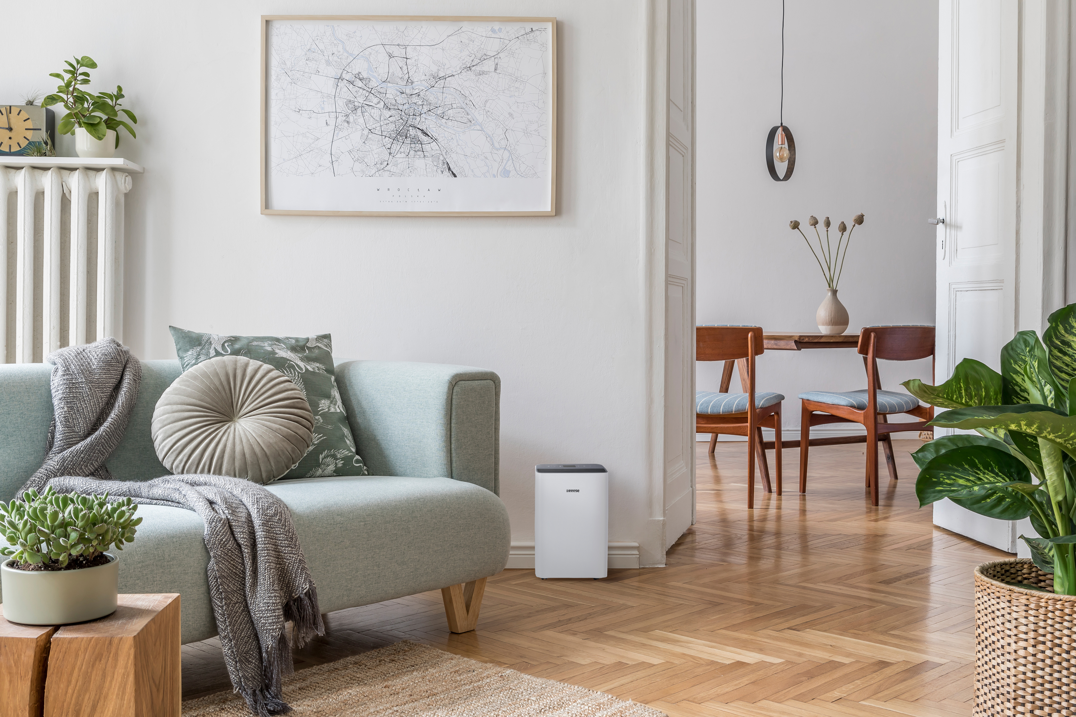 Eeese Emma 12L Luftentfeuchter ist ein kleines und kompaktes Gerät, das mit zahlreichen Funktionen ausgestattet ist. Emma reduziert in Bereichen bis 50 m² die überschüssige Feuchtigkeit (12 Liter / Tag). Dieser Eeese Luftentfeuchter arbeitet sehr leise und energieeffizient. Der optional erhältliche HEPA-Filter macht aus Emma ein 2-in-1-Hybrid-Gerät, das sowohl als Luftentfeuchter als auch Luftreiniger verwendet werden kann. Und mit Emmas praktischer Wäschetrocknungsfunktion wird Ihre Kleidung besonders schnell trocken - energieeffizient und umweltfreundlich. Emma für eine perfekte Kontrolle der Luftfeuchtigkeit in privaten oder gewerblichen Bereichen.