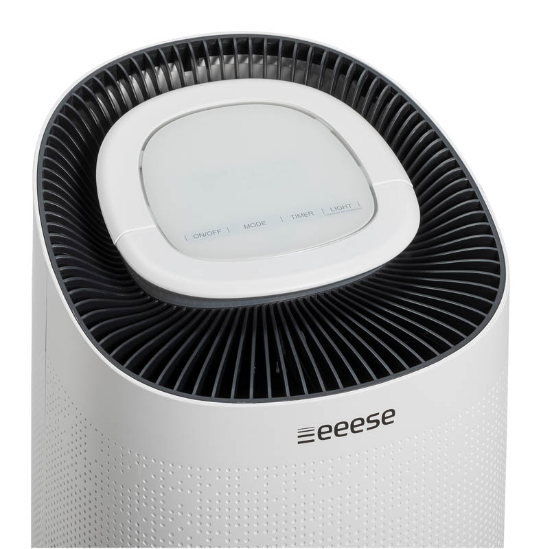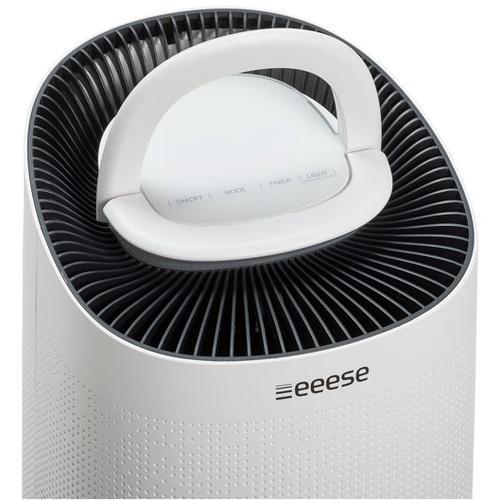 Eeese Vigga Luftreiniger - 3-in-1 Luftreiniger mit Lasersensor + WLAN Eeese Vigga Luftreiniger ist ein mobiler 3-in-1 Luftreiniger mit integriertem Lasersensor und integriertem Handgriff. Unterschätzen Sie nicht das elegante Äußere dieses Luftreinigers. Vigga ist ein leistungsstarkes Gerät mit zahlreichen Einsatzmöglichkeiten – geeignet für Bereiche bis zu 50 m². Sie können diesen Luftreiniger in privaten oder gewerblichen Räumen verwenden, wie Wohnzimmer, Büro – genau dort, wo Sie eine saubere und gesündere Luft wünschen. Vigga ist einfach zu transportieren (integrierte Griffe) und wiegt knapp 5 Kilo. Die Bedienung ist einfach und erfolgt entweder über das übersichtliche Display oder über Ihr Smartphone/Tablet. Vigga besitzt ein integriertes WLAN, das eine einfache Steuerung und Überwachung auch auf Abstand ermöglicht. Das ist bequem, flexibel und innovativ. Der Luftreiniger ist außerdem mit Google Assistant kompatibel. Das benutzerfreundiche, integrierte Display ist mit einer Kindersicherung versehen. Vigga Luftreiniger überzeugt mit seinem hohen CADR-Wert von 400 m³/h. CADR ist eine Qualitätskennzeichnung und steht für 'Clean Air Delivery Rate'. Je höher der CADR-Wert, desto effizienter entfernt der Luftreiniger unerwünschte Partikel wie Pollen, Staub und Rauch aus der Luft in einem geschlossenen Raum. Luftreiniger werden mit Filtern unterschiedlicher Qualität geliefert. Vigga ist mit einem praktischen 3-in-1-Filter ausgestattet: Vorfilter - schützt den HEPA-Filter selbst Aktivkohlefilter - absorbiert Gerüche aus der Luft HEPA H13-Filter - hohe Filterqualität typischerweise in der Pharmaindustrie verwendet, da HEPA H13 die kleinsten Partikel in der Luft wesentlich effizienter zurückhält als HEPA-Filter geringerer Qualität. Der Luftreiniger ist mit zahlreichen Funktionen ausgestattet: Sie können die Zeitschaltuhr für einen flexiblen Betrieb nutzen (2, 4 oder 8-Stunden-Timer), sowie einen AUTO-Modus und Nacht-Modus. Die Luftqualität kann auf Wunsch in verschiedenen Farben angezeigt werden (Beleuchtung). Je nach Luftqualität wechselt die gedämpfte Beleuchtung die Farbe. Ein Blick auf die LED-Anzeige genügt, um zu sehen, ob die Luftqualität optimal ist. Zudem kann Vigga als Ambientebeleuchtung in einer gemütlichen Ecke des Raumes verwendet werden. VIGGA'S Merkmale Für Bereiche bis 50 m² Hoher CADR-Wert: 400 m³/h 3-in-1-Filter: Vorfilter, Aktivkohlefilter & HEPA H13-Filter Integriertes WLAN — kompatibel mit Google Assistant Lüftergeschwindigkeit: 3 Stufen Auto-Modus Nacht-Modus Verringert Allergene, Pollen und Partikel von Haustieren Zeitschaltuhr (Timer): 2, 4 oder 8 Stunden) Anzeige des Filterwechsels Integrierter Lasersensor, der die aktuelle Luftqualität im Raum deutlich anzeigt Farbliche Anzeige der Luftqualität möglich