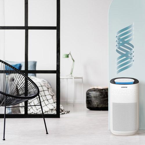 Der Eeese Vigga Luftreiniger ist ein leistungsstarker 3-in-1 Luftreiniger für Räume bis zu 50 m². Der Luftreiniger Vigga ist mit einem effizienten HEPA-Filter ausgestattet, der selbst mikroskopisch kleine Partikel aus der Luft filtert. Außerdem verfügt der Luftreiniger über einen integrierten Lasersensor, der die Luftqualität im Raum überwacht und auf dem LED-Display des Vigga anzeigt. Der Eeese Vigga Luftreiniger ist auch ideal, wenn Sie Haustiere haben, da diese oft Haare und kleine Partikel hinterlassen, die das Raumklima beeinträchtigen. Der innovative Luftfilter verfügt über WLAN und kann über Google Assistant gesteuert werden.