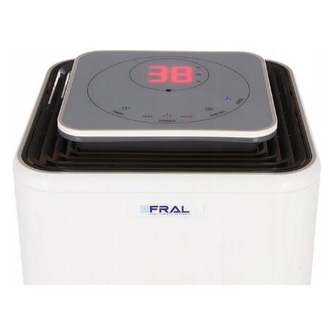 Der Fral DryDigit 13 ist ein äußerst kompakter, leistungsstarker und leiser Luftentfeuchter mit einer Entfeuchtungsleistung von bis zu 13 Litern pro Tag. Dieser Luftentfeuchter ist energieeffizient und verfügt über einen integrierten digitalen Hygrostat. Dieser kleine Luftentfeuchter von FRAL wiegt nur 10,5 kg und ist leicht zu bewegen. Ideal zum Entfernen von Feuchtigkeit in kleinen Räumen. Der Luftentfeuchter verfügt über zwei Lüftungsstufen und eine Timerfunktion. Der Entfeuchter schaltet automatisch ab, wenn der Kondenswasserbehälter voll ist und/oder die gewünschte Luftfeuchtigkeit erreicht ist. Die gewünschte relative Luftfeuchtigkeit kann zwischen 40 - 90 % in 5 %-Schritten eingestellt werden. Eigenschaften: Einfache digitale Bedienung Automatische Auftaufunktion Programmierte Entfeuchtung Anschluss an den permanenten Abfluss mit Standardschlauch (nicht mitgeliefert) Kontrollleuchte für vollen Tank Umweltfreundliches Kältemittel Leicht zu bewegen