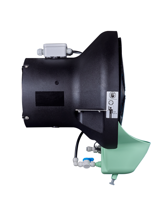 FRANCO UCP-Fly H25 Industrieller Luftbefeuchter - hohe Effizienz bei geringem Stromverbrauch! FRANCO UCP-Fly H25 industrieller Luftbefeuchter und Air-Cooler ist sofort einsatzbereit (Plug&Play). Er ist IP55 klassifiziert (Schutz vor Staub und Strahlwasser) und mit einem Wasserbehälter von 0,6 Litern ausgestattet. Der FRANCO UCP-Fly H25 hat eine Befeuchtungsleistung von 25 Liter pro Stunde (Prozessluft 1.800 m³/h) in Räumen bis 32 m². FRANCO UCP-Fly ist ein Zentrifugalbefeuchter / adiabatischer Befeuchter und hat eine besonders feine Zerstäubung, die mit Nebel verglichen werden kann. Dank des leistungsstarken Gebläses bleiben keine Tröpfchen zurück und der gesamte Raum wird befeuchtet. UCP Fly ist ein kompaktes Gerät, das aus einem einzigen Motor besteht, der das Umfeld belüftet, befeuchtet und kühlt. Dank seiner Materialien ist UCP Fly korrosionsbeständig und eignet sich auch für den Einsatz unter schwierigen Bedingungen. Ideal für den Einsatz in kleinen und mittelgroßen Zuchtbetrieben, Brutanlagen, Geflügelfarmen und überall dort, wo die Temperatur gesenkt oder Desinfektionsmittel versprüht werden müssen. In der Landwirtschaft befeuchtet UCP Fly Pilzfarmen, kühlt Kühlräume und Lagerräume und verstärkt Desinfektionsbehandlungen. In der Industrie ist UCP Fly die perfekte Lösung, um die Luftfeuchtigkeit zu jeder Zeit stabil und unter Kontrolle zu halten. Der FRANCO UPC-Fly besticht mit seiner hohen Effizienz und dem geringen Stromverbrauch. Er zerstäubt und belüftet bis zu 25 l/h mit nur 250 W. Die drei verschiedenen Modelle liefern einen Luftdurchsatz von 750 bis 1800 m3/h und die hochwertigen Materialien machen sie langlebig und widerstandsfähig. Anwendungsbereiche: (Beispiele) H15: öffentlichen Bereichen - arbeitet leise und mit geringem Luftdurchsatz (750 m³/h) H20: Industrielle Bereiche - mittlerer Luftdurchsatz (1.100 m³/h) H25: Viehzucht - hoher Luftdurchsatz (1.800 m³/h) Der UCP-Fly lässt sich einfach installieren (inkl. Halterungen) und ist sofort einsatzbereit. Merkmale: Für Räume bis 32 m² Adiabatischer Befeuchter mit einer Befeuchtungsleistung von 25 Liter / Stunde Zentrifugal-Zerstäuber (Niederdruck) mit Motor-Gebläse Air Flow 1.800 m³/h 1 Motor - hohe Effizienz bei niedrigem Stromverbrauch Produziert sehr feinen Nebel Adiabatischer Befeuchter / Zentrifugalbefeuchter IP55 Schutzklasse: Schutz vor Staub und Strahlwasser Einfach zu installieren und niedrige Installationskosten (Plug & Play) Einfaches Service und Wartung