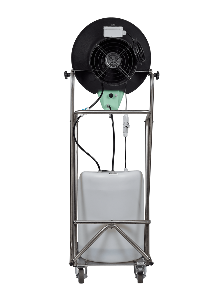FRANCO UCP M25 industrieller Luftbefeuchter ist ein mobiler Befeuchter und Air-Cooler in einem Gerät. Er hilft bei der Aufrechterhaltung der optimalen relativen Luftfeuchtigkeit in Räumen bis 3.500 m³, mit einer Befeuchtungsleistung von 30 Liter pro Stunde (600 - 720 Liter pro Tag)! FRANCO UCP ist einfach zu installieren (Plug&Play) und sofort einsatzbereit. Sein robustes Kunststoffgehäuse mit Edelstahlrahmen zeichnen den FRANCO UCP Befeuchter aus. Außerdem ist er einfach zu transportieren und für viele Zwecke geeignet. Der ideale Befeuchter für Warenlager, Gewächshäuser, Obst- und Gemüselager oder Industriehallen. IP55 klassifiziert und mit einer Luftverdrängung von 1.800 m³/Stunde!