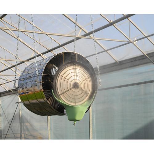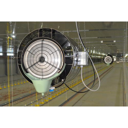 FRANCO UX56M Industrieller Luftbefeuchter - Zwei Motoren, drei Funktionen mit einer Prozessluft von 6.600 m³/h FRANCO UX56M industrieller Luftbefeuchter kombiniert einen adiabatischen Befeuchter mit einem leistungsstarken Luftumwälzer. Der UF ist ein UCP, der mit einem verzinkten Ventilator ausgestattet ist. Er regelt die Luftfeuchtigkeit, senkt dieTemperatur und sorgt auch für eine Abkühlung in mittleren bis großen Bereichen. Das Gehäuse und die Schrauben sind aus Edelstahl und ermöglichen den Einsatz unter schwierigen Bedienungen. Die Installation (Plug&Play) und Wartung ist einfach. FRANCO ist mit 2 Motoren ausgestattet, sowohl der Befeuchter als auch der Ventilator verfügen über einen unabhängigen Motor und ermöglichen hierdurch einen separaten Betrieb.Die Gebläsedrehzahl und die Wasserzufuhr können individuell reguliert werden. Die Luftfeuchtigkeit lässt sich durch die Veränderung der Ventilstellung regulieren. Die Düsen des UX56M sind weniger anfällig für Verschmutzungen und Kalkablagerungen. Der UX56M ist mit einem neu konzipierten Wassertank ausgestattet, der die Abmessungen des Luftbefeuchters gering hält und die Menge an stehendem Wasser begrenzt (0,6 Liter). Schaltet man den Befeuchter aus, kann der UX die Umgebungsluft in beispielsweise Gewächshäusern oder Mastställen mit den Ventilator beleben. Dank seines Luftstroms und der Zerstäubung eignet er sich hervorragend als Kühler für Gewächshäuser, Schweinezuchtbetriebe und Kuhställe. Anwendungsbereiche sind beispielsweise Gewächshäuser, Stallungen, Zuchtbetriebe, Kühlräume, Pilzfarmen, Keimräumen oder verarbeitenden Industrie (Papier, Tabak, Textilien und Holz), einfach überall dort, wo eine gute Luftzirkulation gewährleistet werden muss. Konzipiert für Räume bis 3.500 m³ mit einer Befeuchtungskapazität von 30 Liter / Stunde (720 Liter / Tag). Merkmale: Für Räume bis 3.500 m³ Frei-hängend - einfache Installation (Plug & Play) Adiabatischer Befeuchter mit einer Befeuchtungsleistung von 30 Liter / Stunde (720 Liter / Tag) Zentrifugal-Zerstäuber (Niederdruck) mit unabhängigen 2 Motoren! Air Flow 6.600 m³/h Rotationsgeschwindigkeit (U/min): 890 Maximale Reichweite: 22 Meter Auch für gekühlte Bereichen Produziert sehr feinen Nebel Adiabatischer Befeuchter / Zentrifugalbefeuchter + Ventilator Wasserdruck von 2 bis 6 Atmosphären ist ausreichend Ausgerüstet mit einer Umwälzpumpe Wassertank 0,6 Liter Wasserablass des Wasserbehälters: ausgestattet mit einer Schnellkupplung für den Anschluss eines 3/8"-Abflussrohrs ausgestattet. Unabhängiger Betrieb Befeuchter - Ventilator berarbeiteter Schwimmer lässt sich leicht abnehmen und einstellen Einfaches Service und Wartung
