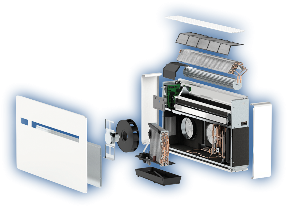Innova 2.0 12HP ELEC Monoblock Klimagerät ist ein platzsparendes Modell ohne Außeneinheit. Es kombiniert moderne Inverter‑Technologie mit einem eleganten, kompakten Design und eignet sich ideal für Räume bis zu 48 m². Dank des durchdachten Monoblock‑Systems lässt sich das Gerät einfach selbst installieren und arbeitet energieeffizient und leise. Auch dieses Modell reduziert nicht nur effektiv die Luftfeuchtigkeit und bietet eine starke Kühlleistung, sondern überzeugt zusätzlich mit einer zuverlässigen Heizfunktion. Neben der effizienten Wärmepumpentechnologie verfügt die ELEC‑Variante über eine integrierte elektrische Zusatzheizung, die automatisch unterstützt, sobald die Wärmepumpe allein nicht mehr ausreicht. Dadurch bleibt die Heizleistung selbst bei niedrigen Außentemperaturen konstant und stabil. Die Bedienung ist flexibel: per Fernbedienung, über das integrierte Touch‑Bedienfeld oder bequem von unterwegs über die App. Das Besondere an der Innova-2.0-Serie ist die innovative BLDC-Inverter-Technologie. Diese verbessert sowohl den akustischen Komfort durch reduzierte Geräuschentwicklung als auch die Leistungsfähigkeit des Geräts. Ohne auffälliges Klimagerät an der Außenwand für eine vollständig harmonische architektonische Integration & nur 16,5 cm breit!