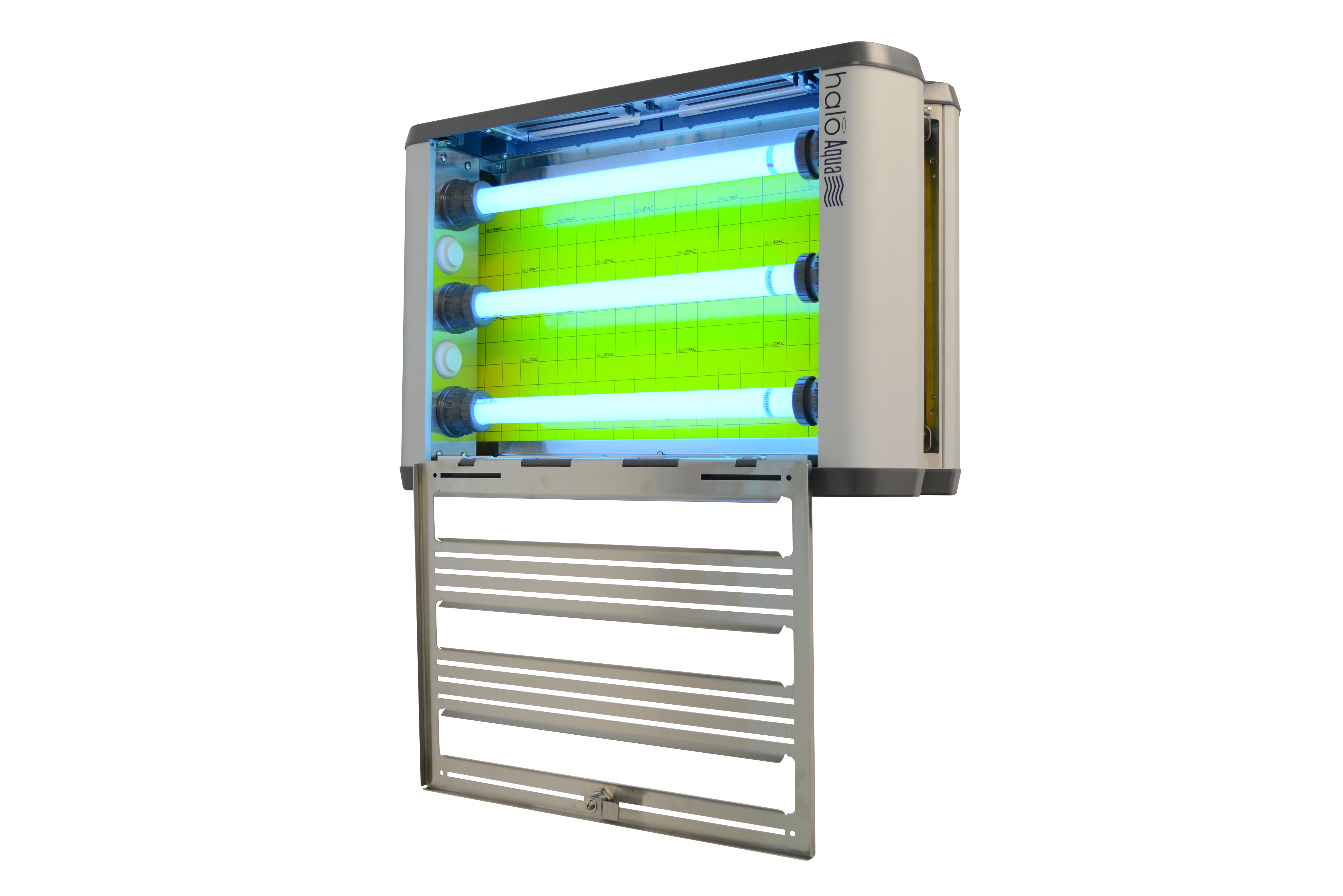 Insect-O-Cutor Halo 2x45 Aqua UV-Insektenfalle ist Teil der umfassenden Halo®-Reihe und eignet sich für den Einsatz in anspruchsvollen Bereichen. Diese UV-Fliegenfalle ist die ideale Lösung für feuchte Umgebungen oder Bereiche, die nass gereinigt werden müssen. Dieser Insektenvernichter ist IP45-klassifiziert (Spritzwassergeschützt) und kombiniert Effektivität mit zeitgemäßem, diskretem Design. Das Klebefoliengerät ist selbstverständlich mit der patentierten Glupac®-Klebefolie mit UV-Stabilisator versehen und hat einen Wirkungsbereich von 240 m². Der Insect-O-Cutor Halo 2x45 Aqua UV-Insektenfalle ist ein doppelseitiges Modell (2 x 45 Watt!) und sehr robust (Edelstahlkonstruktion). Außerdem ist dieser Insektenvernichter mit FEP-beschichteten, bruchsicheren UV-Röhren ausgestattet und die Wartung ist einfach, dank der schwenkbaren Frontabdeckung. Der Halo 2x45 kann einfach an der Decke (Plafond) montiert werden. Auch erhältlich als Insect-O-Cutor Halo 45 Aqua UV-Insektenfalle (einseitig – 120 m²). Weitere Modelle aus der Halo®-Reihe sind in 15, 30 (ein- oder doppelseitig) oder 45 Watt erhältlich (ohne IP45-Klassifizierung).