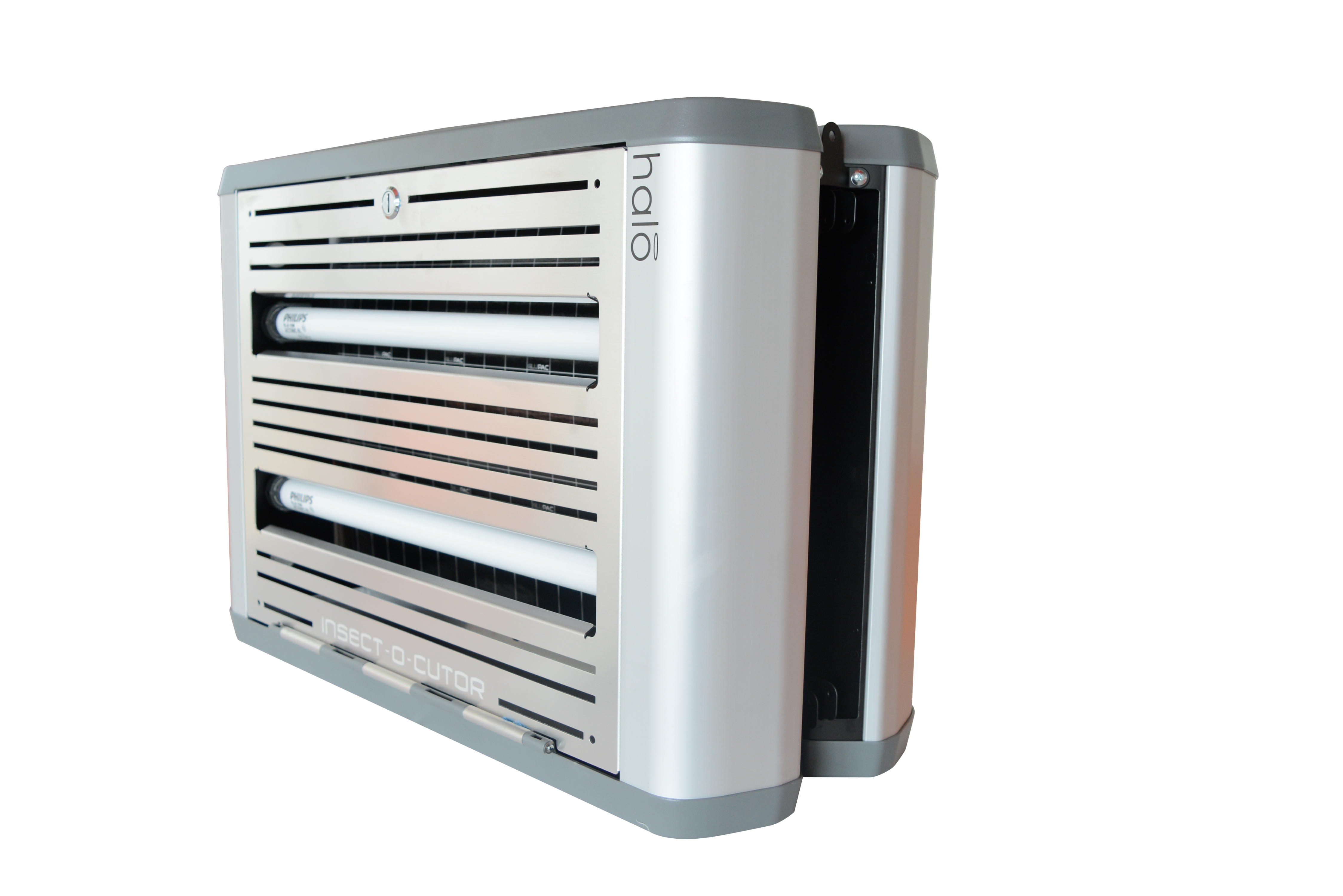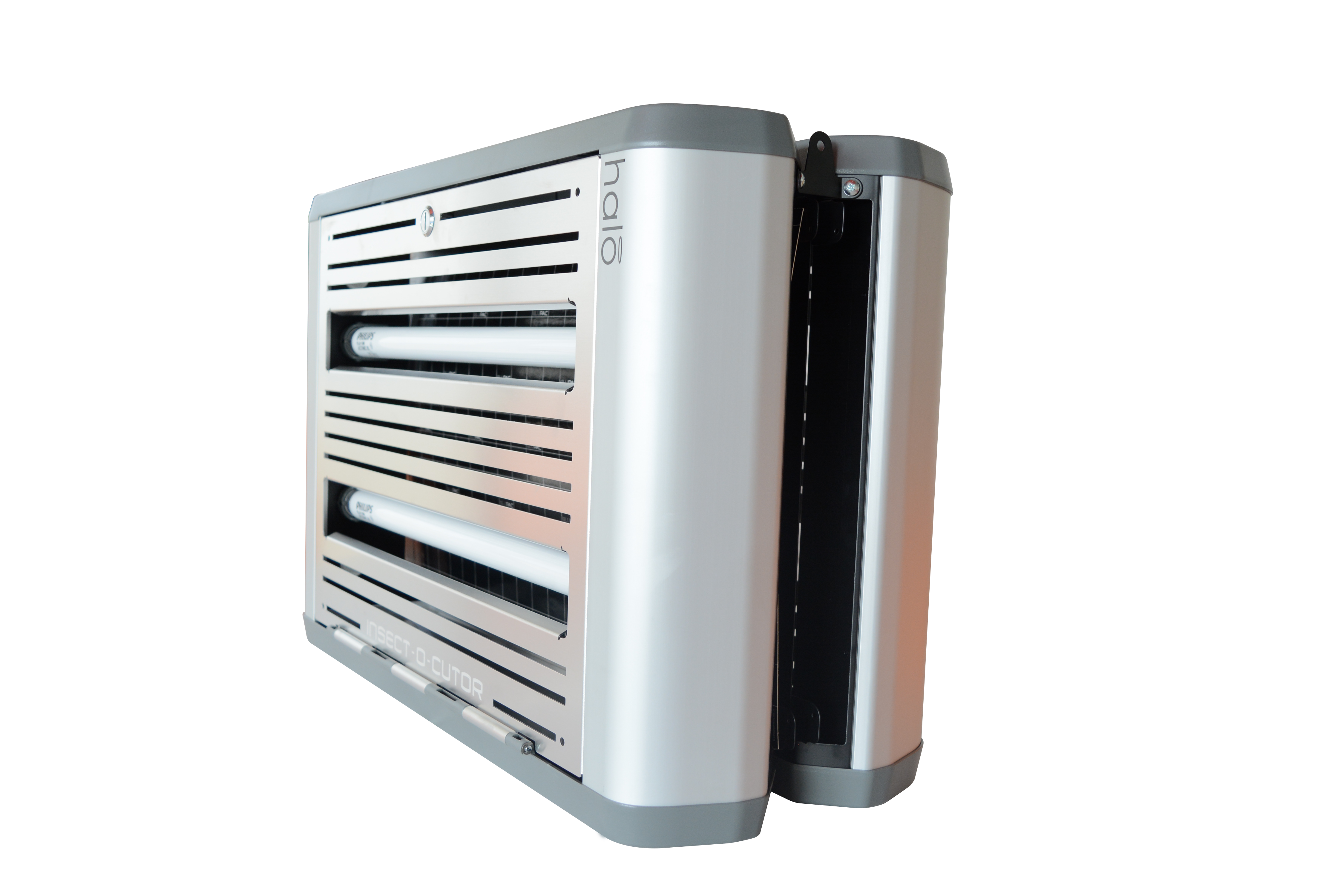 Insect-O-Cutor Halo 2x 30 UV-Insektenfalle ist Teil der umfassenden Halo®-Reihe und eignet sich für den Einsatz in professionellen Bereichen. Dieser innovative Insektenvernichter kombiniert Leistungsstärke mit zeitgemäßem und diskreten Design. Das Klebefoliengerät ist mit der patentierten Glupac®-Klebefolie mit UV-Stabilisator bestückt und hat einen Wirkungsbereich von 160 m². Das robuste, doppelseitige Modell wurde mit FEP-beschichteten, bruchsicheren UV-Röhren ausgestattet und die Wartung ist einfach, dank der schwenkbaren Frontabdeckung. Die Montagemöglichkeiten sind vielfältig: Decken-, Wand- und Standgerät (mit speziell designten Füße). Insektenfallen der Halo®-Reihe: Insect-O-Cutor Halo15, 30 (ein- oder doppelseitig) oder 45 Watt. Mit IP45-Klassifizierung für feuchte Bereiche Insect-O-Cutor Halo45 Aqua UV-Insektenfalle (ein- oder doppelseitig).