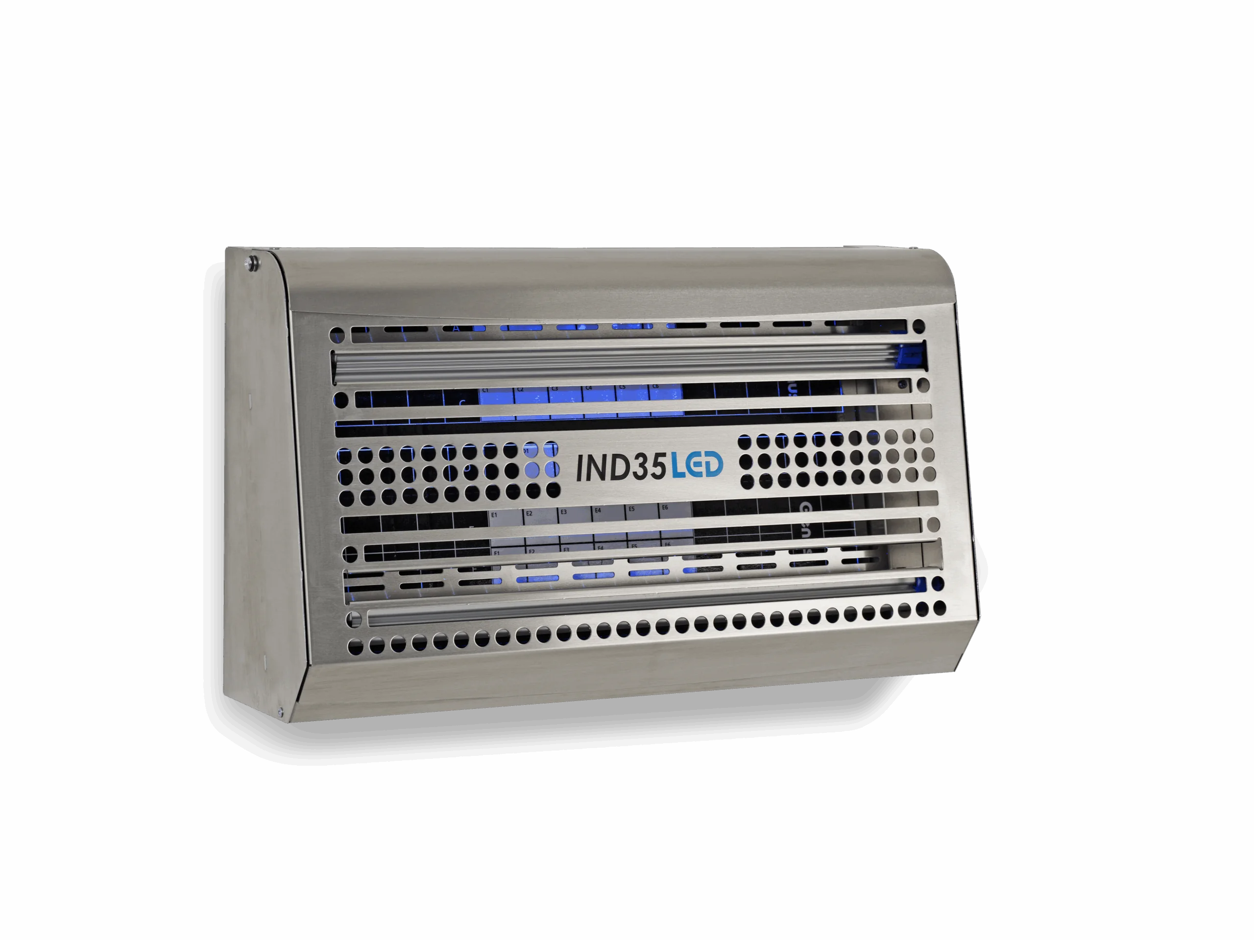 Die Insect-O-Cutor IND35 LED ist eine moderne und leistungsstarke Insektenfalle, die speziell für professionelle Umgebungen entwickelt wurde, in denen Hygiene und Zuverlässigkeit entscheidend sind. Dank fortschrittlicher LED-Technologie und durchdachtem Design bietet dieses Gerät eine hervorragende Fangrate für fliegende Insekten bei gleichzeitig einfacher Wartung. Die IND35 LED ist flexibel einsetzbar und kann sowohl an der Wand montiert als auch freistehend auf einer Arbeitsfläche oder Theke platziert werden. Eine schräg positionierte Klebefläche sowie speziell entwickelte Reflektoren für LED-Lampen erhöhen die Fangwirkung, während die aufklappbare Oberseite und der werkzeuglose Zugang Wartung und Reinigung besonders einfach machen. Das Gehäuse besteht aus hochwertigem recyceltem Aluminium mit einem Recyclinganteil von bis zu 75%. Dadurch ist die IND35 LED nicht nur leistungsstark und zuverlässig, sondern auch eine nachhaltigere Lösung zur Bekämpfung fliegender Insekten.