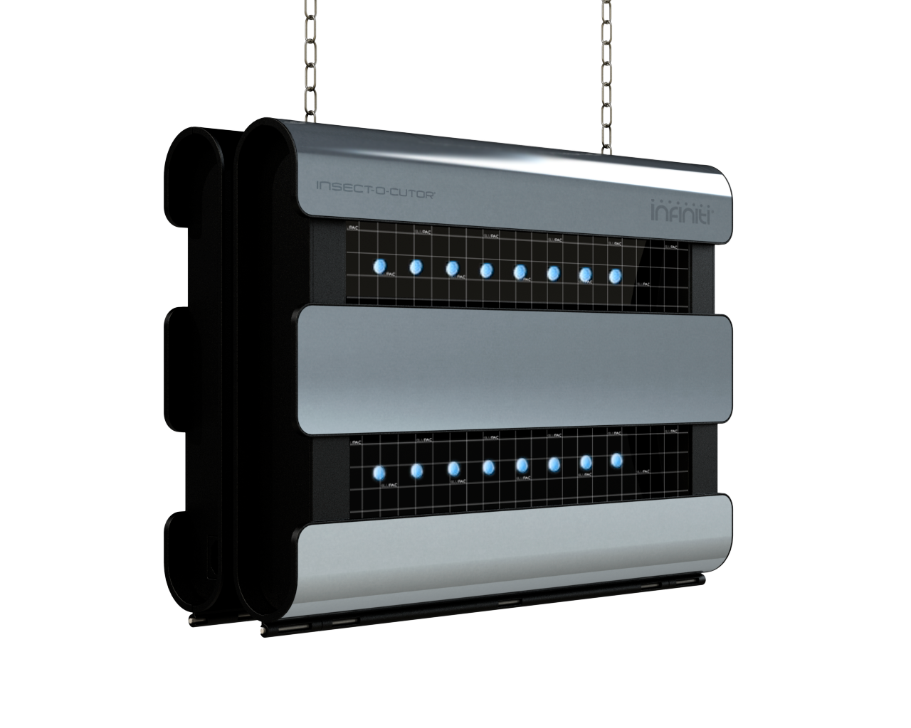 Insect-O-Cutor Infiniti® 4 Insektenfalle wurde speziell für den Einsatz in großen, offenen Bereichen, wie beispielsweise Lebensmittelherstellung, Gastronomie, Lagerbereichen, entwickelt. Diese dekorative und energiesparende Fliegenfalle bietet durch die Kombination von 4 hocheffektiven UV-LED-Strips mit der speziellen Glupac®-Klebefolie eine einzigartige Insektenkiller-Technologie. Der Wirkungsbereich dieser Infiniti® Insektenfalle beträgt bis zu 240 m² - mit niedrigen Energiekosten, einfach in der Wartung und zur Deckenmontage.