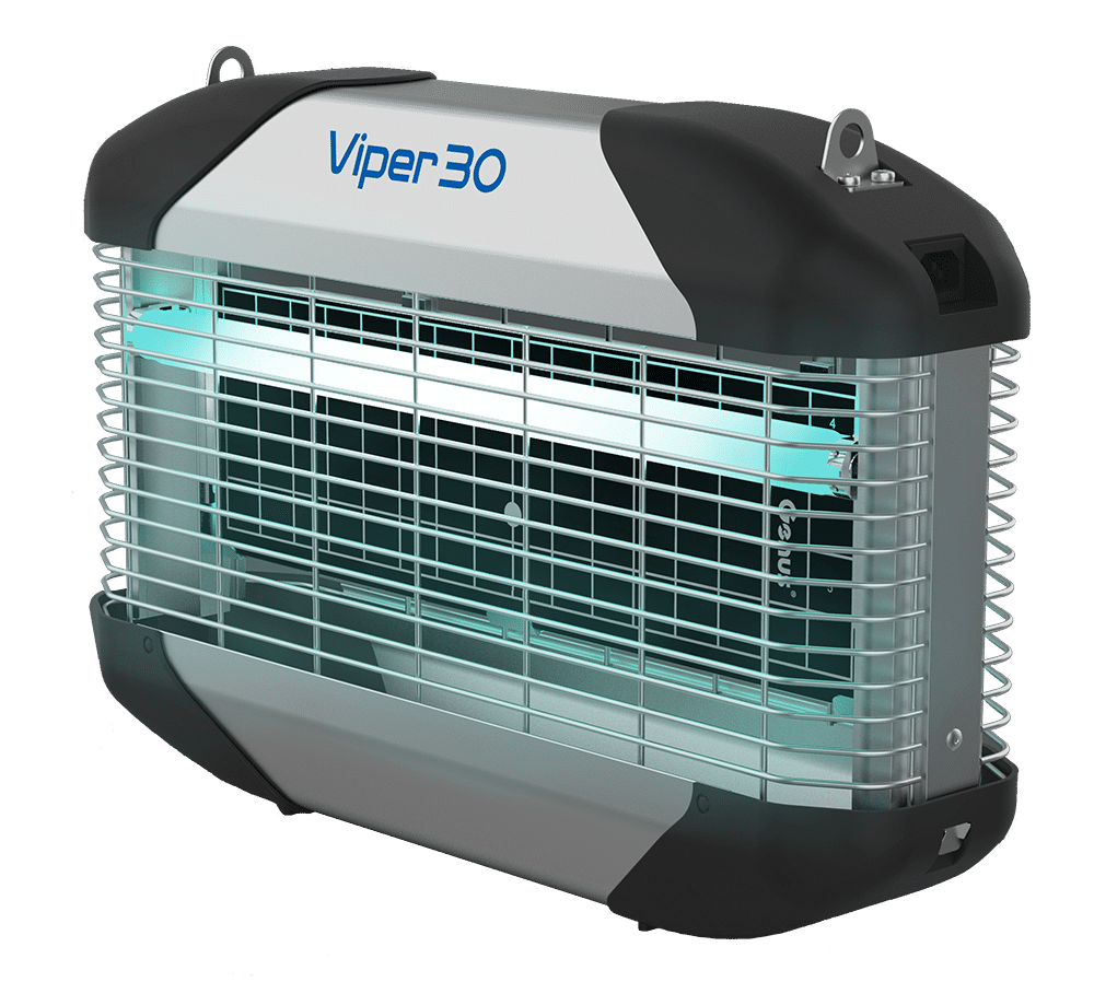 Brandenburg Genus® Viper 30 Killer ist eine leistungsstarke Insektenfalle mit Hochspannungsgitter! Diese Hochleistungs-Fliegenfalle von Brandenburg ist für Räume bis 105 m² konzipiert und besticht mit seinem eleganten, kompakten Design aus rostfreiem Stahl. Zur weiteren Ausstattung des Genus® Viper 30 Killer gehören zwei bruchsichere 15 Watt Lampen und der Translucent Technology™ ausgestattet. Diese patentierte Technologie von Brandenburg sorgt für eine größere Abdeckung der Umgebung mit dem UVA Licht (rund um den Insektenvernichter, nicht nur in eine bestimmte Richtung). Das Resultat ist eine schnellere und höhere Fangquote (fliegendes Ungeziefer) und natürlich mehr Hygiene. Die Wartung des Brandenburg Genus® Viper Killer ist ein Kinderspiel: rasch und ohne Werkzeug. Der Fliegenfänger kann an der Wand oder am Plafond (Decke) befestigt werden, aber auch als freistehend verwendet werden. Dank der 70 mm tiefe Auffangwanne wird die Ausfallzeit bei Entleerung auf ein Minimum reduziert. Anwendungsbereiche: Lebensmittelbereich, Hotel- und Gastgewerbe, Kino, Theater, (Groß-)Küche, Supermarkt, Lagerraum, Abfallraum, Ausstellungsbereich, Rezeption. Merkmale: Für Räume bis 105 m² Insektenvernichter mit Hochspannungsgitter 2x 15 W T8 elektrische Lampen (bruchsicher und splinterfrei) Patentierte Translucent Technology™ Elektronische Technologie, ohne Starter Schnelle und einfache Wartung (ohne Werkzeug) Extra tiefe Auffangwanne: 70 mm Montagemöglichkeiten: Wand, Decke oder Standmodell Gehäuse aus hochwertigem Edelstahl CE-geprüft Entworfen und gebaut Qualität: BS und ISO 9001:2008 Zertifiziert nach europäischen Sicherheitsstandards EN60335-1 und EN60335-2-59