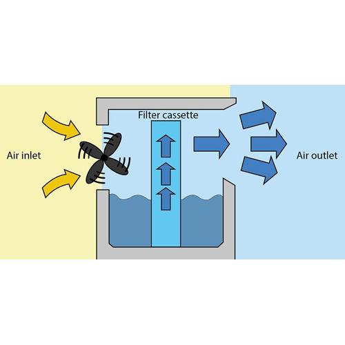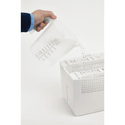 Stylies Helos Luftbefeuchter/Verdampfer – mit antibakteriellen Filterkassetten Stylies Helos Luftbefeuchter befeuchtet und reinigt die Umgebungsluft in Räumen bis 45 m² mit einer Befeuchtungsleistung von 0,3 Liter / Stunde. Der hochwertige Verdampfer mit Kaltvernebelungs- und Luftreinigungsfunktion arbeitet sehr sparsam (Verbrauch 6 Watt) und geräuscharm. Helos kann sogar während der Nacht im Kinderzimmer verwendet werden, ohne den Schlaf Ihres Lieblings zu stören. Mithilfe der antibakteriellen Filterkassetten filtert er mühelos Staub-, Rauchpartikel oder Pollen aus der Luft. Die Bedienung der 3 Leistungsstufen (Niedrig, Mittel oder Hoch), der Zeitschaltuhr (1 – 12 Stunden) und des integrierten Hygrostat erfolgt mittels digitalen Touch-Display mit LED-Licht. Das eingebaute Hygrostat kontrolliert und reguliert die gewünschte Luftfeuchtigkeit automatisch. AUTO-Modus erfolgt die intelligente Feuchtekontrolle und im NACHT-Modus sind die Lichter dimmbar. Funktionsweise Verdunstungs-Luftbefeuchter: Verdunstungs-Luftbefeuchter erzielen eine hochwirksame und natürliche Befeuchtung. Die trockene Luft wird an der Rückseite des Befeuchters eingezogen und Ventilatoren 'blasen' die Luft durch einen mit Wasser gesättigten Filter. Die befeuchtete Luft wird dann durch den oberen Rand des Befeuchters ausgeblasen und an die Raumluft abgegeben. Die Befeuchtung selber ist nicht sichtbar. Ein großer Vorteil des Verdunster-Systems ist, dass eine Überbefeuchtung nicht möglich ist, da gesättigte Luft keine weitere Feuchtigkeit aufnimmt und somit auch die Leistung des Gerätes automatisch reguliert. Außerdem haben Verdunster-Luftbefeuchter einen sehr niedrigen Stromverbrauch, arbeiten äußerst effizient und geräuschlos. Helos ist selbstverständlich mit dem Stylies Ion Silver Cube ausgestattet. Dieser setzt langsam Silberionen im Wasser frei, wodurch eine antibakterielle Wirkung erzielt wird und dazu beiträgt, dass das Wasser hygienisch sauber bleibt/wird. Der Wassertank hat ein Fassungsvermögen von 4 Liter und ist abnehmbar. Bei leerem Wassertank schaltet Helos sich automatisch aus. Idealer Luftbefeuchter für private oder gewerbliche Räume wie beispielsweise Schlaf-, Kinderzimmer oder Büro Merkmale: Für Räume bis 45 m² Befeuchtungskapazität 0,3 Liter / Stunde Digitales Toch-Display mit LED-Licht Mit integriertem Hygrostat: regelt und kontrolliert die Luftfeuchtigkeit Leistungsaufnahme: 6 Watt (sehr verbrauchsgünstig) Geräuschpegel: <23,5 dBA 2 Antibakteriell behandelte Filterkassetten 3 Leistungsstufen: Niedrig, Mittel oder Hoch Zeitschaltuhr (Timer) 1-12 Stunden Nachtmodus (dimmbar) AUTO-Modus Natürliche Befeuchtung Abnehmbarer Wassertank: 4 Liter Füllstandsanzeige: Ja Automatische Abschaltung bei leerem Tank Integriertes Aromafach (ätherische Öle) Einfach Wartung Lieferumfang enthalten: 2 x Filterkassetten und 1 x Stylies Ionic Silver Cube Reinigung und Wartung: Regelmäßig gut ausspülen und Wasser wechseln, Filterkassetten und Clean Cube nach der empfohlenen Zeit austauschen Filter-Wechsel Verdunstungs- Filter: alle 2-3 Monate Ionic Silver Cube: alle 12 Monate ersetzen Die Lebensdauer und Wirksamkeit des Filters und des Silver Cubes ist abhängig von der Luft-und Wasserqualität. Verwenden Sie hartes Wasser, muss das Gerät möglicherweise öfter entkalkt werden. Hierfür empfehlen unsere Experten den Gebrauch von CalcOff Entkalker.