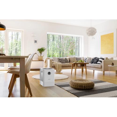 BONECO W300 Luftbefeuchter und Luftreiniger besticht mit seinem schlichten, modernen Design und seiner hohen Leistung. Konzipiert für Räume bis 50 m² / 125 m³ sorgt dieser auf dem Verdunstungsprinzip basierende Luftwäscher automatisch für die richtige Luftfeuchtigkeit und reinigt die Umgebungsluft in Wohn-, Schlaf-, Kinderzimmer oder Büro. Ideal für Asthmatiker, Allergiker und Menschen mit Atemwegsproblemen. Der BONECO W300 ist einfach in der Bedienung, Wartung und Reinigung. Die Komponenten, wie Tank oder Verdunstungselemente, sind wasch- und spülmaschinengeeignet und wer will, kann ätherische Duftöle verwenden. Mit extra großem Wassertank (12 Liter) für eine lange Laufzeit ohne Beifüllen zu müssen. BONECO - healthy air