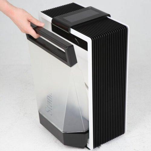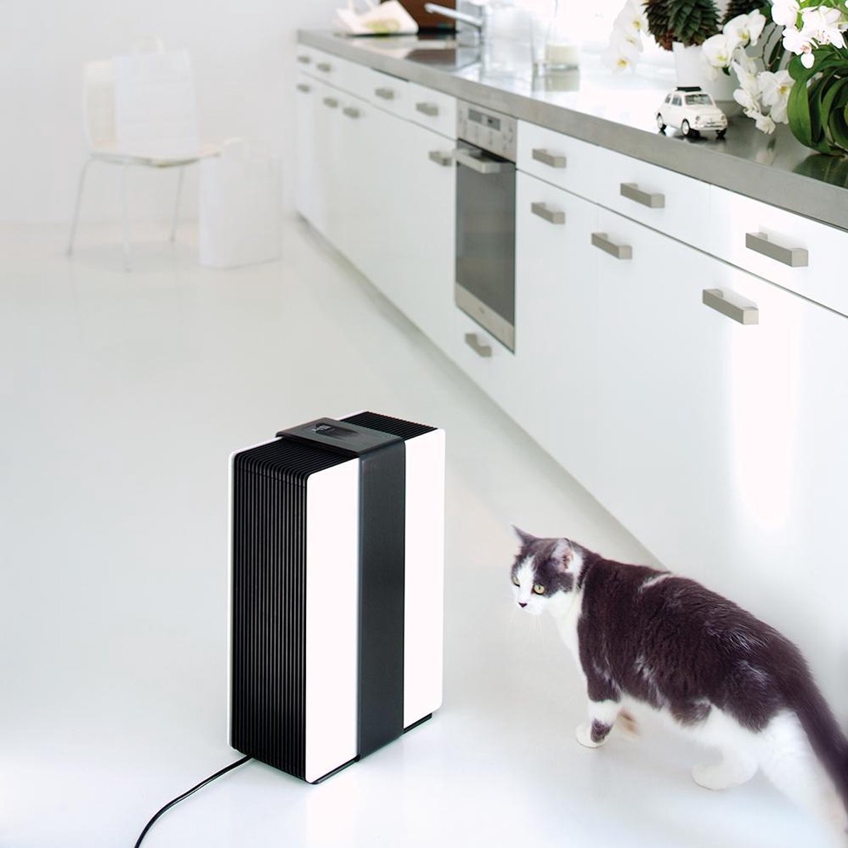 Stadler Form Robert Luftreiniger und Luftbefeuchter - preisgekrönter 2-in-1 Luftwäscher Stadler Form Robert Luftwäscher reinigt und befeuchtet die Umgebungsluft und kann ganzjährig verwendet werden. Robert filtert wirkungsvoll bis zu 50 % aller Partikel und Pollen aus der Luft* und ist für Allergiker der ideale Mitbewohner. Unangenehme Gerüche werden innerhalb von 30 Minuten mit über 94 % reduziert.** Der Luftwäscher von Stadler Form wurde mit mehreren Preisen ausgezeichnet: Gewinner Product Design Award (2014) Gewinner German Design Award Special (2016) Gewinner reddot award (2014) Stadler Form Robert Luftreiniger und Luftbefeuchter kann in Räumen bis 80 m² / 200 m³ verwendet werden. Er arbeitet sehr energieeffizient (ab 7 Watt!) und ist einfach zu bedienen. Das Touch-Display mit Bewegungssensor vereinfacht die Bedienung und können Sie aus den 4 Leistungsstufen inkl. Turbo oder den verschiedenen Funktionen wählen: Auto-Modus, Nacht-Modus oder Clean-Modus. Der integrierte Duftspender (Aromafach) ermöglicht den Gebrauch Ihres Lieblingsduftes (ätherische Öle) für ein angenehmes Wohlfülklima. Der Luftwäscher von Stadler Form ist mit einem herausnehmbaren Wassertank (6,3 Liter) und praktischen Handgriffen ausgestattet. Ein automatischer Abschaltmechanismus warnt bei leerem Wassertank und schaltet das Gerät aus. Nach der Befüllung beginnt Robert nach ein paar Sekunden wieder automatisch mit der Befeuchtung/Reinigung. Die Befeuchtungskapazität beträgt 13,2 Liter pro Tag mit einem Energieverbrauch von 7 - 30 Watt. Merkmale: Für Räume bis 80 m² / 200 m³ 2-in-1 Luftreiniger und Luftbefeuchter Energiesparend : 7 - 30 Watt Verdunstungskapazität: 13,2 Liter / Tag Adaptive Humidity™ Touch-Display mit Bewegungssensor 4 Leistungsstufen inkl. Turbo-Modus Integrierter Hygrostat kontrolliert und regelt die Luftfeuchtigkeit Zeitschaltuhr Auto-Modus Nacht-Modus Clean-Modus: automatische Reinigung und Entkalkung Abwaschbarer Luftfilter Wassertank: 6,3 Liter Automatische Abschaltung bei leerem Tank Anzeige leerer Tank (Wasser nachfüllen) Reinigt bis zu 50 % aller Partikel und Pollen aus der Luft Geräuschpegel: 27 dB(A) Ionic Silver Cube (verbessert die Wasserqualität / Wirksam: 1 Jahr) Duftstoffbehälter für ätherischen Öle SCHÜTZT EIN LUFTWÄSCHER VOR DEM CORONAVIRUS? *Robert erzielt nach 30 Minuten Betrieb in einer 22 m³ grossen Prüfkammer eine Reduktion von 50 % der Belastung / Ct = 50 %. Daraus ergibt sich eine Abreinigung von mind. 10 % nach 30 Min. in einem Raum mit einem Volumen bis 72 m³. Geprüft durch die SLG Prüf- und Zertifizierungs GmbH, Deutschland nach Standard DIN 44973-100:2002-01, A2. **Gemäss Bericht von einem unabhängigen Labor aus Japan entfernt Robert Gerüche von Zigarettenrauch nach 30 Min. aus der Luft (über 94 % Reduktion von Acetic Acid, 44 % Reduktion von Acetaldehyde, 91 % Reduktion von Ammonium).