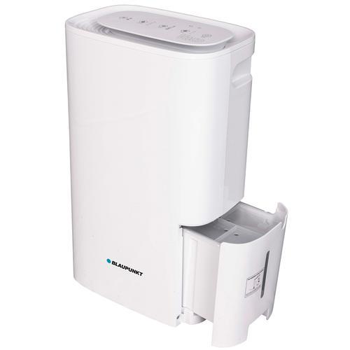 Blaupunkt VACO 18 Luftentfeuchter - für den Einsatz daheim Der Blaupunkt VACO 18 Luftentfeuchter zeichnet sich durch seine kompakten Abmessungen, geringes Gewicht und niedrigen Betriebskosten aus. Seine Entfeuchtungskapazität beträgt 18 Liter pro Tag in Räumen bis 25 m² (65 m³). Die integrierten ergonomischen Handgriffe und Rollen ermöglichen einen einfachen Transport und den Einsatz in verschiedenen Räumen. Sorgt für die richtige Luftfeuchtigkeit in ihrem Zuhause Der von Blaupunkt entwickelte VACO 18 Luftentfeuchter wurde speziell für den Gebrauch daheim entwickelt. Dieser Raumluftentfeuchter verfügt über intuitive Bedienelemente und ein elegantes Design. Mit seinen praktischen Automatikfunktionen gehört dieser Lufttrockner zu den modernsten Haushaltsgeräte. Ein weiterer großer Vorteil ist das automatische Abtausystem, dass eine Entfeuchtung bereits ab einer Raumtemperatur von 5 °C ermöglicht und somit einen Einsatz in unbeheizten Räumen wie Keller, Garage, Hobbyraum ermöglicht. Blaupunkt VACO 18 - Für jeden Das übersichtliche Bedienfeld ermöglicht eine intuitive Bedienung, auch wenn Sie keine Ahnung von Technik haben. Wählen Sie einfach den Betriebsmodus, ändern Sie die gewünschte Luftfeuchtigkeit, programmieren Sie die Arbeitszeit oder nehmen Sie andere Einstellungen vor. Nachdem Sie eine Auswahl getroffen haben, wird das entsprechende Symbol angezeigt und Sie erhalten eine Mitteilung über die aktive Funktion. Falls eine Langszeit-Trocknung erforderlich istFalls das Gerät über einen längeren Zeitraum kontinuierlich trocknen soll, bietet der Luftentfeuchter VACO 18 die Möglichkeit, das Kondenswasser über einen natürlichen Abfluss permanent ablaufen zu lassen. (Schnellkupplung für den kontinuierlichen Kondensatablaas) Merkmale: Für Räume bis 25 m² (65 m³) Kompakter, eleganter Luftentfeuchter mit intuitivem Bedienfeld Entfeuchtungskapazität von 18 Liter / Tag 4 Betriebsmodi: 3 Gebläsestufen Wäschetrockner-Funktion Zeitschaltuhr (Timer) Elektronisches Hygrostat Automatische Abtauung Betriebstemperatur: 5 °C - 35 °C Wassertank (Kondensat): 2,5 Liter Sicherheit: Stoppt automatisch bei vollem Wassertank Schnellkupplung für kontinuierlichen Kondensatablass Kunststoffgehäuse mit integriertem Griff und Rollen Automatischer Neustart nach Stromausfall mit Aufrechterhaltung der Einstellungen Waschbarer Luftfilter Einfach zu transportieren: Rollen und Handgriffe