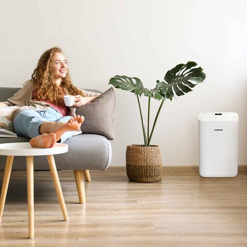 Eeese Otto 13L Luftentfeuchter ist ein leistungsstarker Luftentfeuchter, der sowohl über WLAN als auch mit Ihrem Google Assistant gesteuert werden kann. Es war nie einfacher, eine perfekte Kontrolle über die Luftfeuchtigkeit in Räumen zu haben, und er bietet weit mehr, als man von einem kompakten Luftentfeuchter für Privathaushalte erwarten würde. Otto arbeitet mit seinen nur 35 dB(A) extrem leise und hat eine zirkulierende Trocknungsfunktion für Kleidung. Das Jubiläumsmodell der Firma eeese-air care ist IPX4-klassifiziert und kann auch in Nassbereichen (Badezimmer) verwendet werden. Sein Stromverbrauch beträgt nur 145 Watt - konzipiert für Räume bis 60 m² und mit einer Entfeuchtungsleistung von 13 Litern pro Tag. Erhältlich in zwei Farben: Weiß und Grau (Midnight Grey).