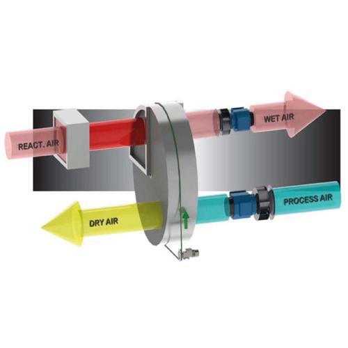 Richtung zur Prozessluft und unterwirft ihn einem umgekehrten Prozess, bei dem der Rotor seinen Feuchtigkeitsgehalt aufgibt und wieder auf sein ursprüngliches Absorptionsvermögen zurückkehrt.