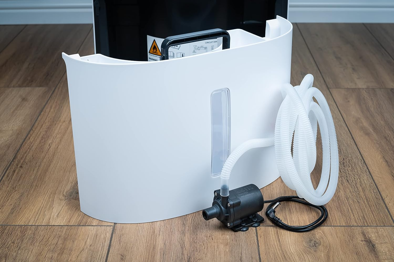 Der MeacoDry Arete ist auch mit einer integrierten Hebepumpe erhältlich als MeacoDry Arete LiPu (Lifting Pump/Kondensatpumpe). Sollten Sie Ihren Luftentfeuchter in einem Raum verwenden wollen, in dem Sie den Tank nicht täglich entleeren können, sorgt diese Ablaufpumpe dafür, dass das Kondenswasser automatisch zu einem Waschbecken oder einem anderen Abfluss geleitet wird. Damit kann der Luftentfeuchter kontinuierlich weiterarbeiten, ohne dass Sie ihn manuell entleeren müssen. Die Pumpe ermöglicht auch das Hochpumpen und Ableiten von Feuchtigkeit aus einem tiefer gelegenen Raum, beispielsweise einem Keller. Die maximale Fallhöhe beträgt 2,5 Meter.