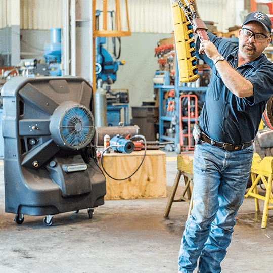 Der Portacool Jetstream™ 240 Verdunstungskühler ist ein energieeffizienter und mobiler Bio-Cooler für Räume bis 105 m². Er sorgt für Abkühlung dort wo sie benötigt wird und das ohne feste Installation oder Luftschläuche! Direkte Kühlung nach Befüllen mit Wasser (Kältemittel). Der Wassertank verfügt über ein Volumen von 189 Litern und schaltet sich automatisch ab, wenn der Tank fast leer ist. Die Funktionsweise des Portacool Jetstream™ 240 basiert auf dem Prinzip der adiabaten Verdunstung, der Kühlung der Umgebungsluft mit Wasser. Anwendungsbereiche sind beispielsweise die Industrie, Gewerbe, Fabrikhallen, Lagerhallen, Werkstätten, Landwirtschaft, Gartenbau, überall dort, wo eine herkömmliche Klimatisierung nicht praktisch oder zu teuer ist. Dank seiner kleinen Standfläche passt er auch auf kleinstem Raum. KUUL-Effekt: 17 AirSain - offizieller Vertriebspartner von PORTACOOL