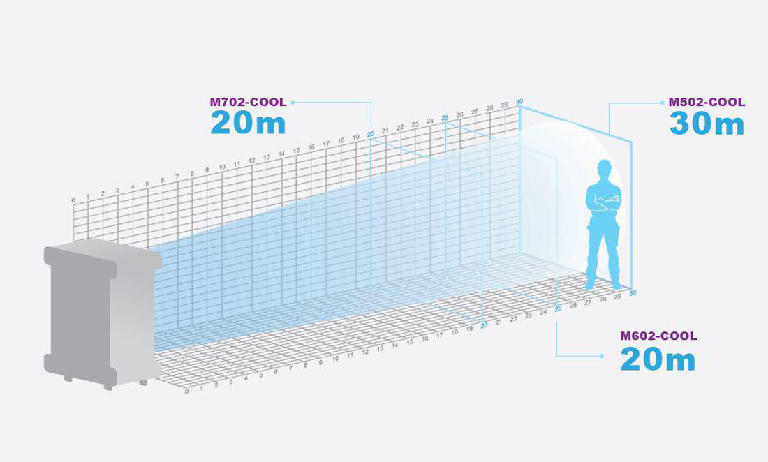 Das Plug & Play-Gerät sorgt für angenehme Temperaturen in Fabriken, Industrie- und Produktionsbereichen, Restaurants oder Hotels. Geeignet für Flächen bis 500 m² mit einer Luftumwälzung von 48.000 m³ / Stunde.