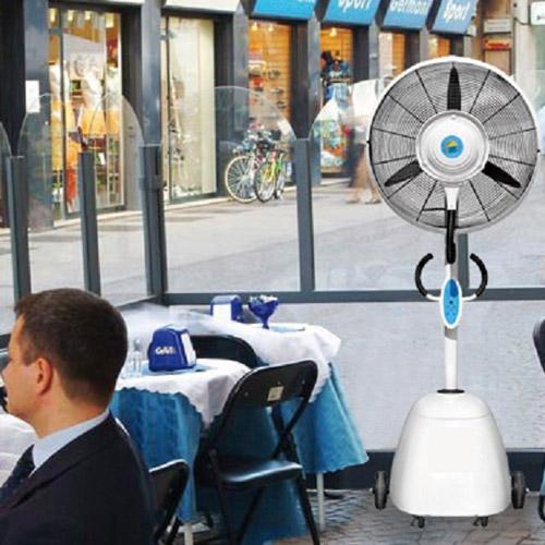 Star Progetti FRE326N Bio-Luftkühler – sorgt für eine kühle Luft, wo Sie es benötigen Star Progetti FRE326N Bio Luftkühler ist nicht nur einfach zu transportieren, sondern arbeitet ohne Düsen! Der mobile Verdunstungskühler nutzt für die Erzeugung kühler Luft das natürliche Prinzip der Wasserzerstäubung. Hierbei werden Millionen von Mikroteilchen Wasser freigesetzt, durch ihre rasche Verdunstung die Umgebungstemperatur senken und die Wärme ableiten. Die Belüftergeschwindigkeit des Düsenlosen Stand-Luftkühlers kann einfach mit einem 3-stufigen Schalter reguliert werden, wie auch die Nebelmenge (Zerstäubung des Wassers). Der anpassbare Oszillations-Winkel (Schwingsystem mit einem Winkel von 0 bis 72°) ermöglicht eine Anpassung (Vergrößerung) des zu belüftenden Bereiches, und mithilfe des Timers wird ein automatischer Betrieb ermöglicht. Der integrierte Wassertank hat eine Füllmenge von 57 Liter und ist mit einer UV-Lampe versehen, die das Wasser sterilisiert und ein Wachstum von Bakterien, Schimmelpilzen etc. verhindert. Star Progetti FRE326N kann sowohl im Innen- als auch Außenbereich verwendet werden. Er ist nicht nur einfach zu bedienen, sondern auch wartungsarm - da keine Kalkablagerungen im Gerät entstehen und er ohne Kompressor funktioniert. Anwendungsbereiche sowohl im privaten als auch im gewerblichen Innen- und Außenbereich wie Lagerhallen, industrielle Bereiche, überdachte Flächen, Sporthallen, Schwimm- oder Hallenbäder, Terrassen, Außenbereiche im Hotel- und Gastgewerbe oder bei Veranstaltungen. Merkmale Für Räume bis 40 m² Reichweite: ca. 15 m Luftdurchsatz: 143 m³ - max. 220 m³/ min. OHNE Düsen - keine Kalkablagerungen im Gerät Kein Kompressor Temperaturabsenkung: 4 - 6 ° C Lüftergeschwindigkeit: 3-stufig Timer-Funktion Regulierbarer Nebel Sehr leiser Luftkühler Geräuschpegel: 55 / 60 / 68 dB(A) Oszillations-Winkel: 0 – 72 ° Neigungswinkel: –15 ° / + 15 ° Niedriger Energieverbrauch Integrierter Wassertank mit UV-Licht: 57 Liter Wasserverbrauch: bis zu 2,8 Liter / Stunde Propellerdurchmesser: 650 mm Drehzahl 1100 - 1250 - 1400 U / min Höhe: 185 cm Für Innen- oder Außenbereich BIO-Verdunstungskühler ohne Düsen - für Gewerbe - Industrie - Sport