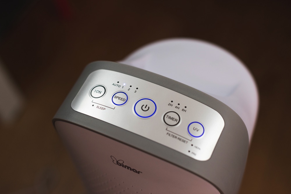 Der schlanke und mobile Bimar PA100 Luftreiniger sorgt mit seinem 3-Filter-System (Vorfilter, Aktiv-Kohlefilter und HEPA H13-Filter) in Kombination mit einer UV-Lampe (antibakteriel) und einem Ionisator für eine gesunde Umgebungsluft in Räumen bis 26 m². Seine Reinigungskapazität beträgt (CADR) von 220 m³ / Stunde und er entfernt 99,97 % aller Allegene Pollen, Haustierschuppen, Gerüche, Keime oder Schimmel. Ideal bei Allergien, verstopfter Nase, Husten, Asthma oder anderen Atemwegserkrankungen. Zur weiteren Ausstattung gehören ein Luftqualitätssensor (3 Farben), eine Zeitschaltuhr (2, 4 oder 8 Stunden), verschiedenen Betriebsmodi (Normal- oder Schlaf-Modus) und einem regulierbaren Luftstrom (MIN/MED/MAX oder AUTO). Bimar PA100 Luftwäscher für eine gesunde Luft daheim oder im Büro