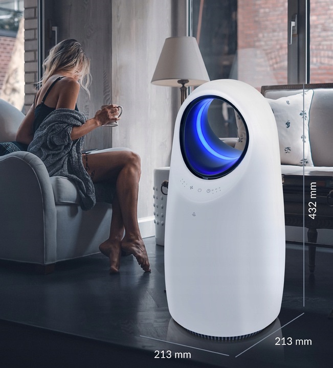 Blaupunkt Lavender AiRing Luftreiniger besticht mit seinem modernen Design und der diskreten Beleuchtung. Dieses 2-in-1 Gerät (Luftwäscher und Lüfter) mit Sprachfunktion und HEPA H13 Filter ist für Räume bis 10 m² konzipiert (Luftdurchfluss von 80 m³/h). Dank seiner zylindrischen Form und den 3 Luftreinigungsstufen (Vorfilter, HEPA H13 Filter und Aktivkohle-Filter) entfernt er 99,95 % der Schadstoffe aus der Luft. Lavender ist einfach zu bedienen und kompatibel mit Smartphone App, iOS, Android/Sprachassistent.