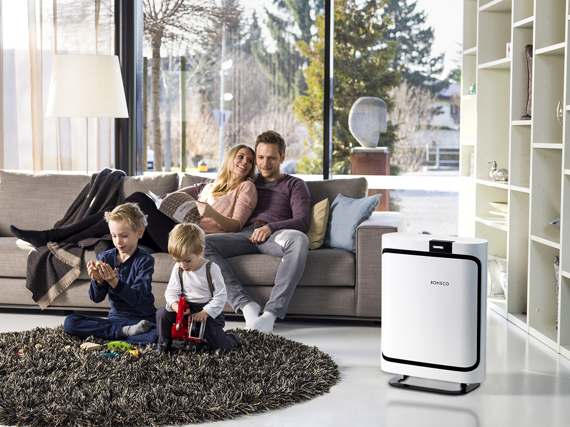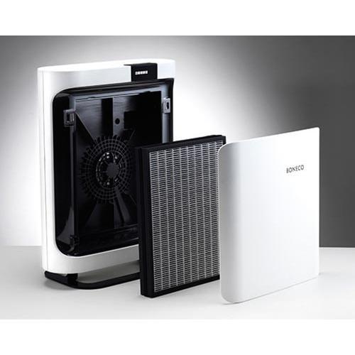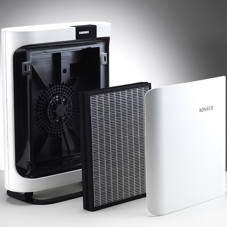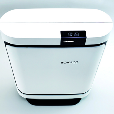 BONECO P400 Luftreiniger mit schlankem Design passt zu jedem Interieur und sorgt für gesunde Umgebungsluft. Er wurde mit dem Red Dot Design Award ausgezeichnet. Sie können aus drei verschiedenen HEPA-Filtern wählen: „ALLERGY” (Standardausstattung), „BABY” oder „SMOG” (optional). Alle Filter bestehen aus einem Vorfilter, einem HEPA-Filter und einem Aktivkohlefilter und können je nach Bedarf verwendet werden. Sie können den BONECO P400 Luftreiniger ganzjährig verwenden und er ist die ideale Lösung für Allergiker oder Asthmatiker. Mit einem Luftdurchsatz von 280 m³/h eignet er sich für kleinere Räume bis 23 m² und überzeugt durch seinen niedrigen Stromverbrauch. Die Bedienung ist dank Touch-Display einfach und für die Verwendung von ätherischen Ölen ist ein Duftstoffbehälter integriert. BONECO - healthy air