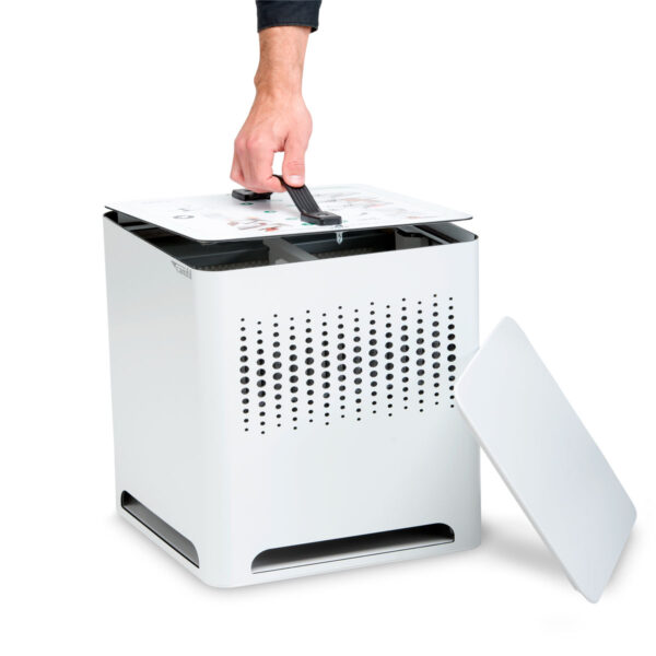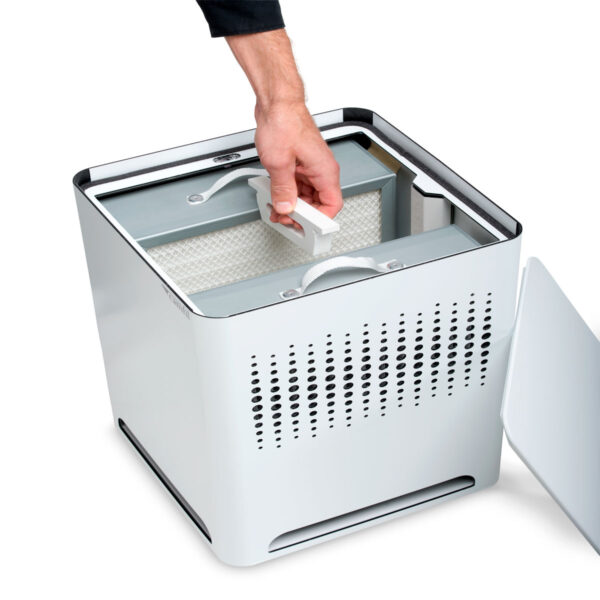 Die Luftreiniger der City-Familie sind ECARF-zertifiziert. Das bedeutet, dass sie allergikerfreundlich sind und vor potenziellen Allergieauslösern schützen können. Jeder Absolute™ HEPA-Filter wird vor der Auslieferung gemäß DIN EN1822 einzeln getestet, um die Filtereffizienz zu zertifizieren und die optimale Leistung sicherzustellen. Diese Kombination aus Partikel- und Molekularfilter ist so effizient, dass bei herkömmlichen Belüftungssystemen die Luft 3 x durch die Filter strömen muss, um den gleichen Reinigungseffekt zu erreichen! Dieses hochwirksame Filterpaket sammelt Staub und Partikel, ohne Leistungsfähigkeit zu verlieren und hält länger als die Filter herkömmlicher Luftreiniger. Die Molekular-Filter werden gemäß ISO 10121 getestet. Der abnehmbare Oberteil sorgt für einen problemlosen und einfachen Filterwechsel.