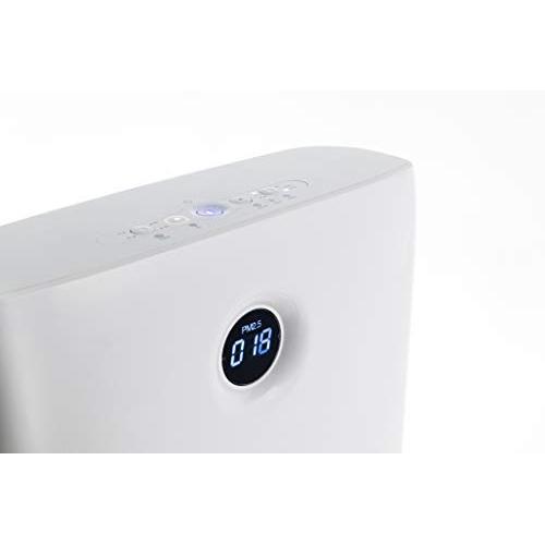 Olimpia Splendid Aura Di Luftreiniger sorgt für eine gesunde Luft daheim oder in der Arbeit. Dieser besondere Luftreiniger reguliert seine Ventilatorgeschwindigkeit automatisch entsprechend der Luftqualität und reinigt die Luft mit einem dreistufigen Filtersystem (Vorfilter, HEPA-Filter und Aktivkohlefilter), einer keimtötenden UV-C-Lampe und einem Ionisator. Die gemessene Luftqualität des Raumes wird auf dem übersichtlichen Display wiedergegeben. Perfekt zur Verbesserung der Luftqualität in Räumlichkeiten bis 70 m².