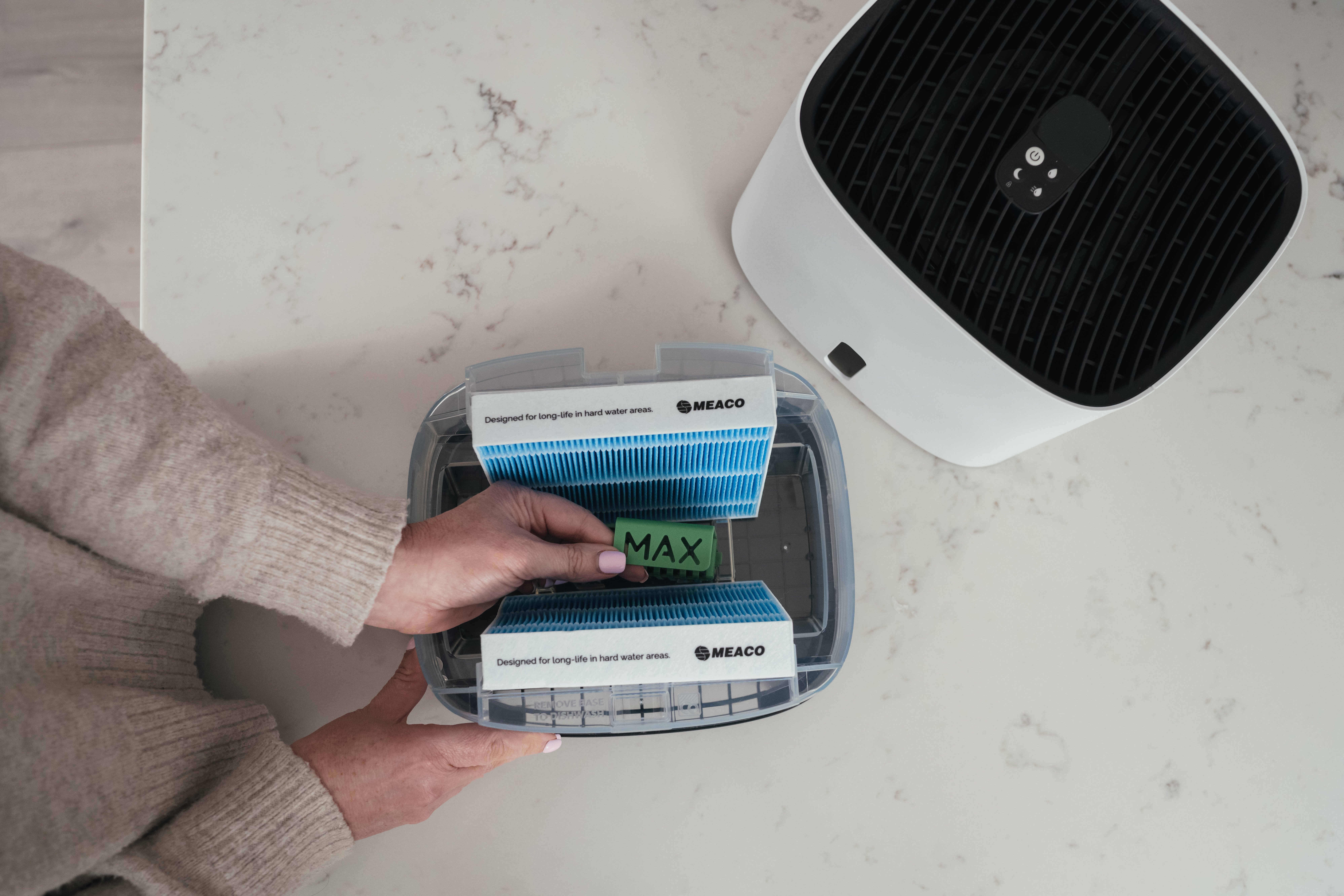 Meaco Armin® 300 Luftbefeuchter ist ein Kaltwasser-Befeuchter und funktioniert mit Leitungswasser. Er garantiert eine unkomplizierte und saubere Befeuchtung. Meaco Armin® arbeitet leise, erhöht den Wohnkomfort bei geringem Stromverbrauch und verursacht keine weißen Ablagerungen (Kalk). Der Verdunstungs-Luftbefeuchter kann bequem von oben mit Wasser befüllt werden und verfügt über eine doppelte Luftführung, welche die Luft optimal mit Feuchtigkeit versorgt. Ausgerüstet mit dem innovativen Silvertex® Wasserentkeimungspad verhindert der Kaltwasser-Luftbefeuchter in Kombination mit einer antimikrobiellen Beschichtung der Verdunstungspads das Wachstum von Bakterien und Mikroorganismen. Für eine perfekte Luftbefeuchtung auch in Ihrem Zuhause!