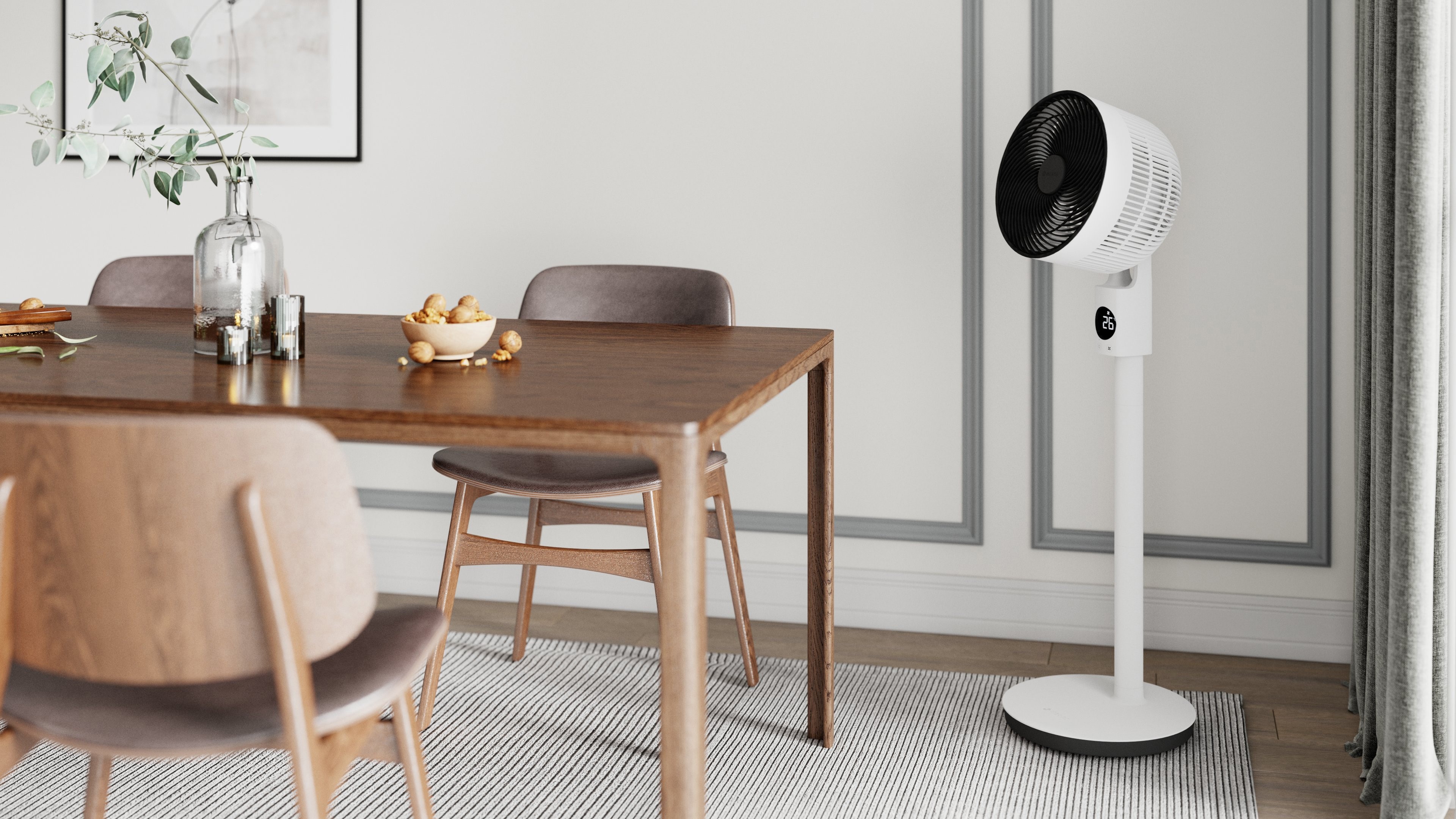 MeacoFan Sefte® 10 Pedestal Ventilator gehört zur neuesten, komplett überarbeiteten Sefte®-Ventilatorserie von Meaco! Sefte®-Lüfter zirkulieren mehr Luft (1.140 m³/h), bieten einen superleisen Betrieb (24 - 48 dBA) und niedrige Betriebskosten (7 - 26 Watt). Der Ventilatorkopf bewegt sich leise und kühlt den gesamten Raum mithilfer seiner innovativen Luftumwälztechnik, die kühle Luft sowohl horizontal als auch vertikal ausbläst, mit einem präzisen Luftstrahl. Außerdem ist der MeacoFan Sefte® 10 Standventilator höhenverstellbar (3 Optionen) und geeignet für Räume bis 50 m² – er kühlt Ihr Schlafzimmer, große Wohnräume oder Büro auf eine angenehme Art und Weise. Ausgezeichnet mit dem Quiet Mark Award!