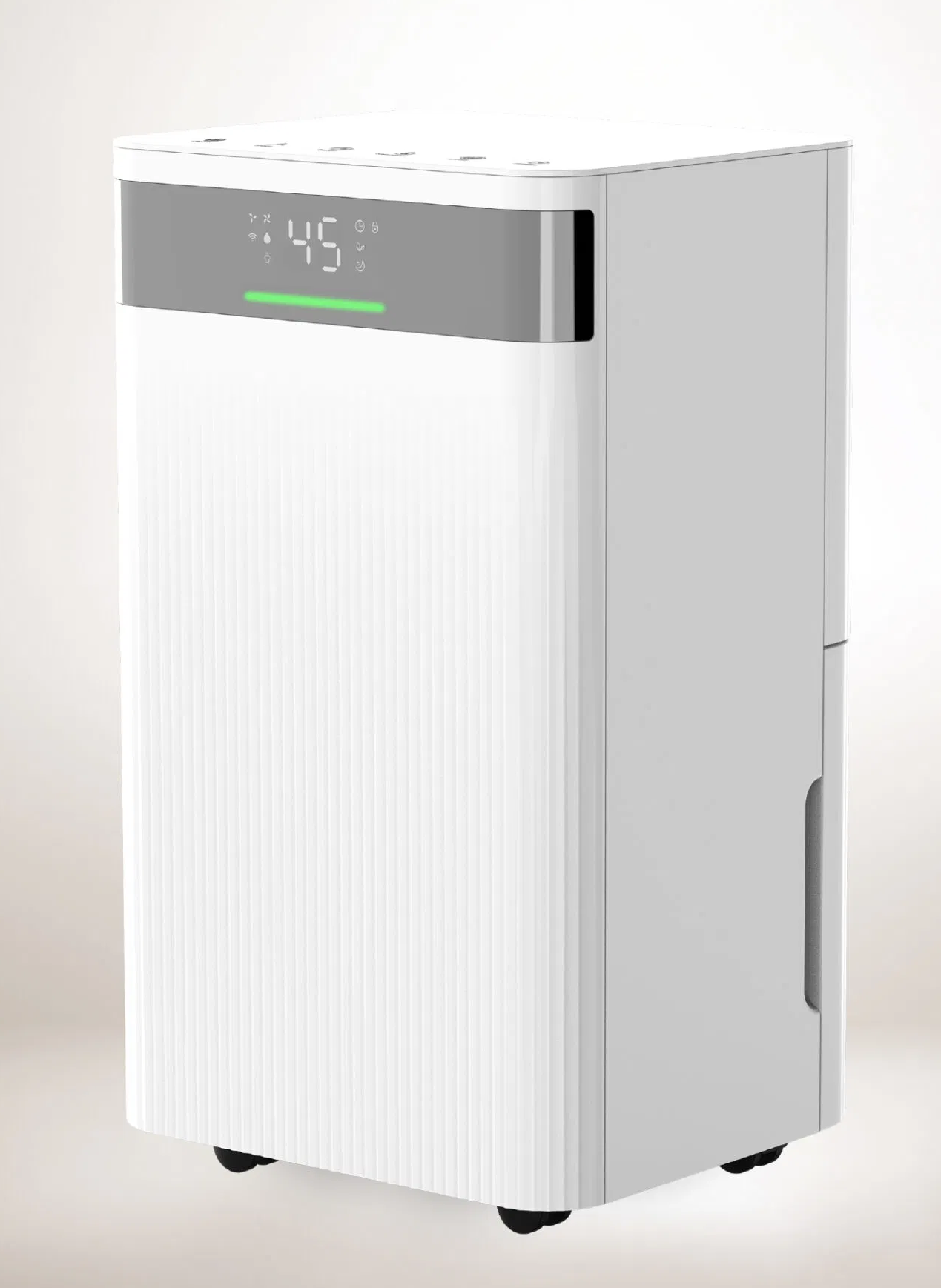 Mill MDH20 Luftentfeuchter ist kompakt und effizient. Er entfernt überschüssige Feuchtigkeit zuverlässig und sorgt so in Bereichen bis 30 m² für ein angenehmes Raumklima. Mit einer Entfeuchtungsleistung von 20 Litern pro Tag und einer Leistungsaufnahme von nur 420 Watt arbeitet er besonders energieeffizient. Das moderne LED-Touchdisplay ermöglicht eine intuitive Bedienung und zeigt die aktuelle Luftfeuchtigkeit an. Zudem stehen zwei Lüfterstufen und drei Betriebsmodi (Trocknen, Auto, Sleep) zur Auswahl. Der 4-Liter-Wassertank lässt sich leicht entleeren und für den Dauerbetrieb ist ein Ablaufschlauch im Lieferumfang enthalten. Zur weiteren Ausstattung gehören ein waschbarer Filter, eine Timer-Funktion sowie eine Kindersicherung.