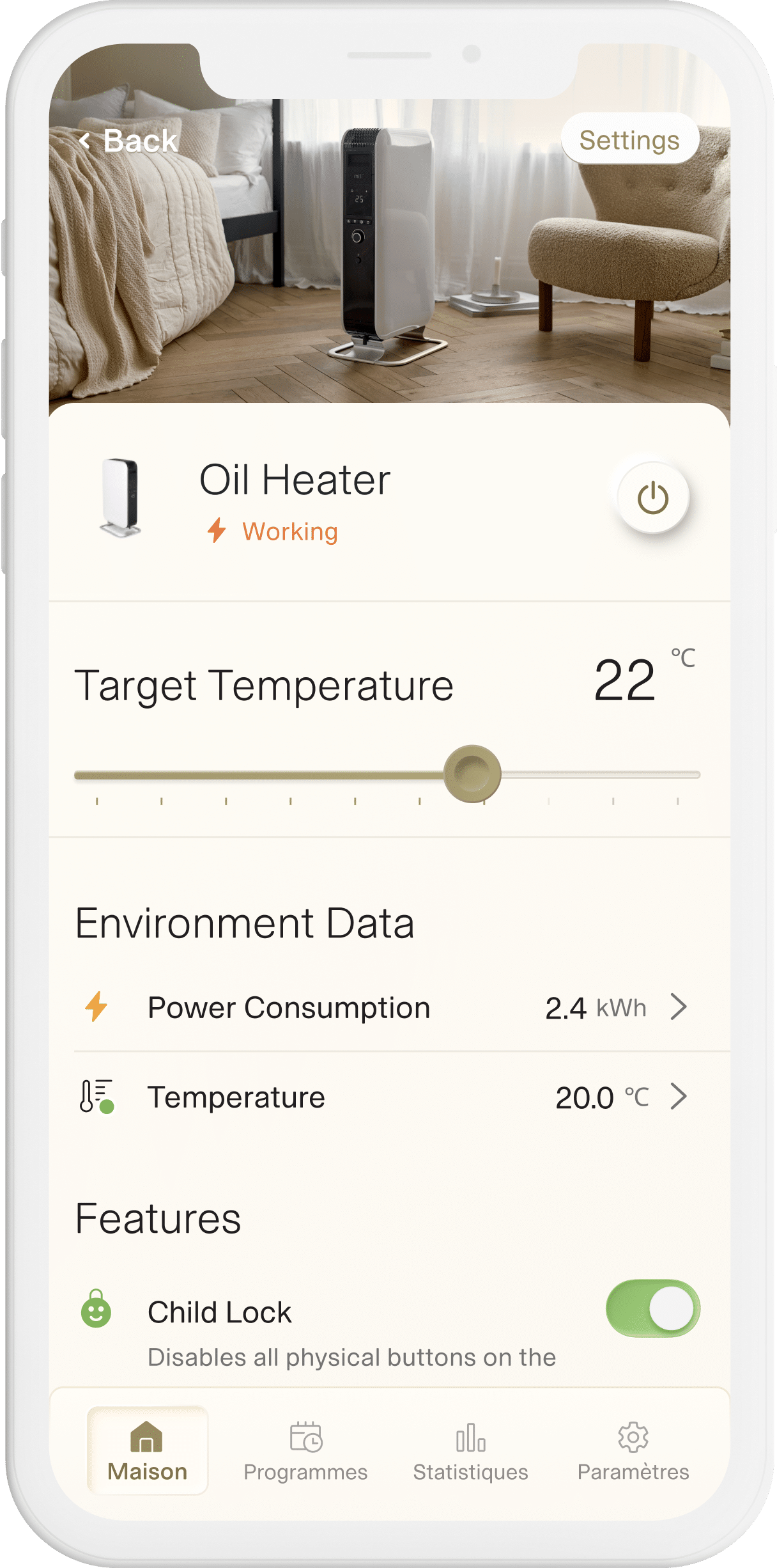 Mit der Millheat-App können Sie Ihre Heizung weltweit einfach über Ihr Smartphone oder Tablet per Tastendruck steuern. Sie können Ihren Tagesplan einfach programmieren, der Millheat-App regelt automatisch die Temperatur, damit Sie sich keine Sorgen mehr machen müssen. Selbstverständlich kann das Heizpaneel von Mill auch manuell bedient werden. Das integrierte WiFi-Modul stellt mittels Bluetooth eine direkte Verbindung zu einem WiFi-Netzwerk her. Nach dem geplanten Update im Herbst 2022 wird die Ölheizung auch kompatibel mit Google Assistant, Alexa und Apple HomeKit sein.