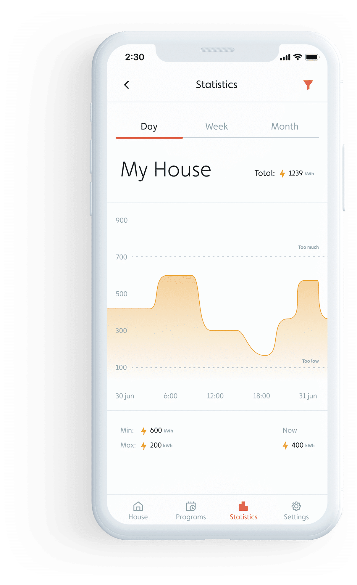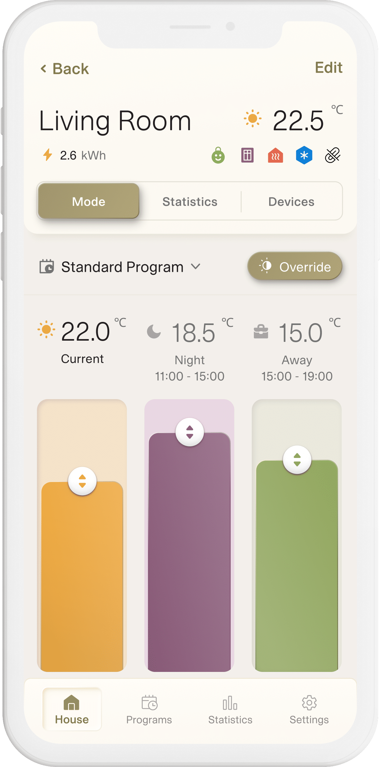 • Bedarfsgerechtes Heizen - der Schlüssel zur Energieeinsparung! Das Heizgerät erwärmt den Raum so, dass die gewünschte Temperatur zu einer bestimmten Zeit erreicht wird. Das Heizgerät lernt, wie schnell/langsam die Temperatur im Raum mit der Zeit steigt/senkt. Auf diese Weise weiß es, wann es mit dem Heizen beginnen muss, um die gewünschte Temperatur zu dem von Ihnen in der App festgelegten Zeitpunkt zu erreichen.