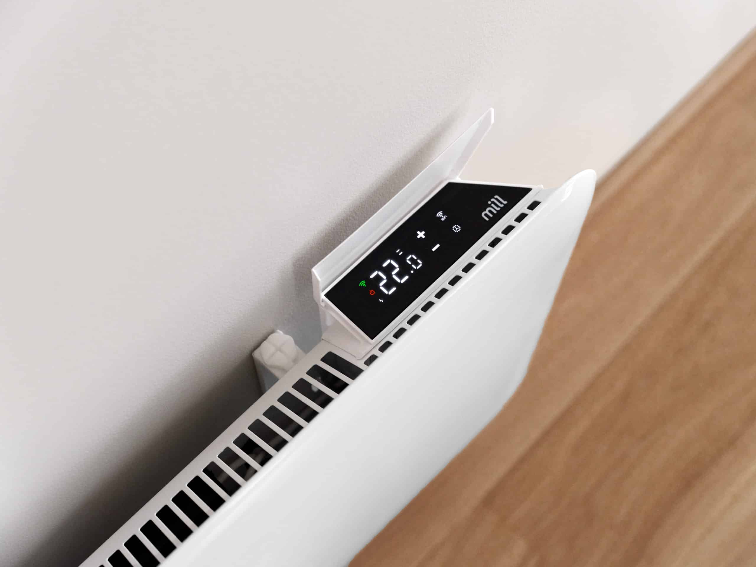 Mill PA400WIFI4 Heizpaneel - unsichtbare WLAN-Heizung der 4. Generation Mill PA400WIFI4 Heizpaneel ist eine Stahlflächenheizung und sorgt mit einer Leistung von 400 Watt für eine angenehme Wärme in Räumen bis 6 m². Das elegante skandinavische Design mit sanft gebogener Front sorgt für eine dezente, gleichmäßige Wärme. Dank IPX4‑Klassifizierung ist der Heizkörper auch ideal für Badezimmer geeignet. Dieses Heizpaneel der 4. Generation hält dank Mill PID Wattage Tech™ und Predictive Heating™ die Temperatur besonders konstant und optimiert gleichzeitig den Energieverbrauch.. Die Bedienung erfolgt manuell über ein stilvolles Touch-Bedienfeld oder über WiFi (Millheat-App). Mit der Millheat‑App steuern Sie Ihre Heizung bequem per Knopfdruck – weltweit und jederzeit. Die kostenlose App lässt sich einfach auf Smartphone oder Tablet installieren und ermöglicht die zentrale Kontrolle mehrerer Heizgeräte. Kurze Übersicht der intelligente Funktionen: Mill Predictive Heating™: lernt Ihr Heizverhalten und heizt vorausschauend Mill PID Wattage Tech™: präzise Temperaturregelung bei minimalem Energieverbrauch Wattage Cap (Watt-Begrenzung) & ECO‑Modus: reduziert den Stromverbrauch um bis zu 30 % Komfortfunktionen: Fenster-offen-Erkennung, Kindersicherung, kommerzielle Sperre Breite Smart‑Home‑Kompatibilität: Matter, Zigbee 3.0, Homey, Google Home, Alexa, Apple Home Open-Window-Funktion: Sobald die Temperatur im Raum plötzlich sinkt, stoppt das Heizpaneel mit der Erwärmung. Steigt die Temperatur innerhalb von 15 Minuten um mindestens drei Grad an, beginnt der Heizkörper wieder zu heizen. Bedarfsgerechtes Heizen - der Schlüssel zur Energieeinsparung! Das Heizpaneel wurde mit einem ausgeklügelten Algorithmus ausgestattet, der es ihm ermöglicht, den Temperaturanstieg bzw. -abfall im Raum zu erkennen und analysieren. Hierdurch 'lernt' der Heizkörper und weiß, wann es Zeit ist, sich einzuschalten, damit die gewünschte Temperatur zur eingestellten Zeit erreicht und auch der Stromverbrauch optimiert wird. Keramisches Aluminiumheizelement: Dank des sehr sicheren und effizienten Keramik-Aluminium-Heizelements kann der Wandkonvektor die ganze Zeit über eingeschaltet bleiben, auch während der Nacht oder wenn Sie nicht im Haus sind. Merkmale: Für Räume bis 6 m² Heizpaneel mit 400 Watt Leistung LED-Display Integriertes WiFi (WLAN): WiFi + Bluetooth 5.2 + Zigbee 3.0 Manuelle Bedienung oder via Millheat-APP Kinderschutz: Tastensperre möglich (via APP oder manuell) Zeitschaltuhr (Timer): Einstellung von Tages- und Nachtprogramm Open-Window-Funktion Verschiedenen Programme: Auto-Modus/Komfort Modus/Nacht-Modus/Urlaubsmodus PID-Thermostat: Automatische Temperaturkontrolle bis zu 30 % weniger Stromverbrauch X-Aluminium-Heizelement Energieeffizient und intelligent Überhitzungsschutz IPX4-klassifiziert zum Gebrauch im Badezimmer Kabellänge: 130 cm (rechts) Wandmontage - inklusive Wandhalterung und Schraube Mill 5-Jahre-Garantie